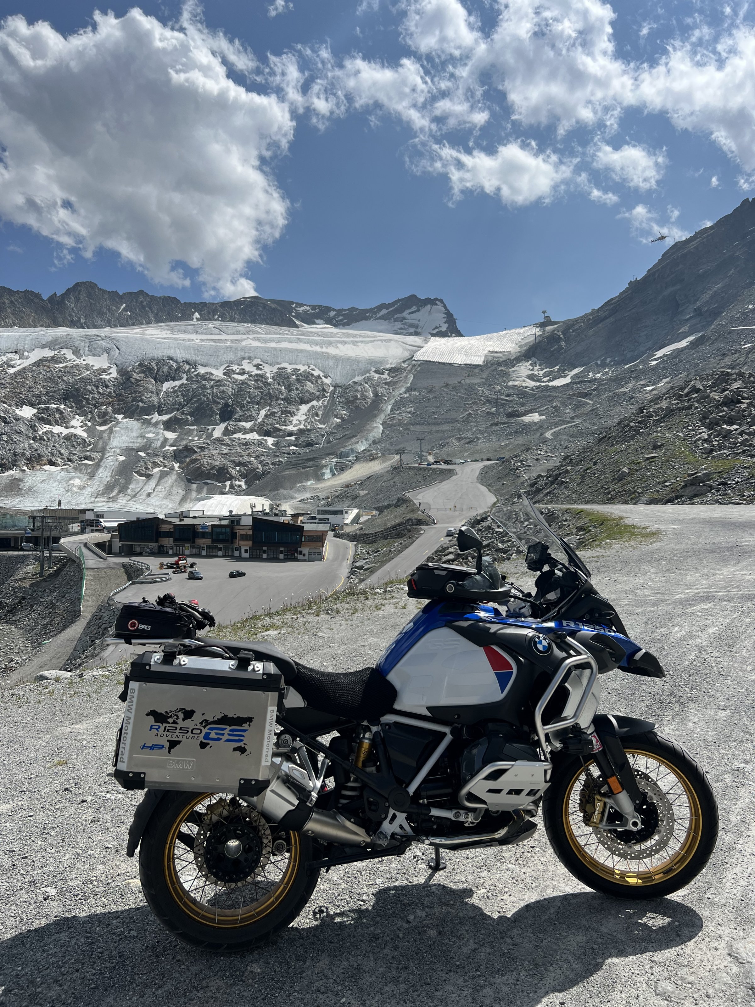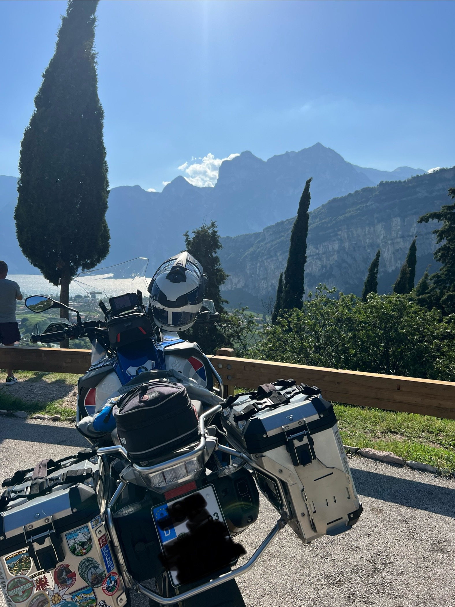 Auf dem linken Koffer sind Aufkleber von meinen Touren geklebt.