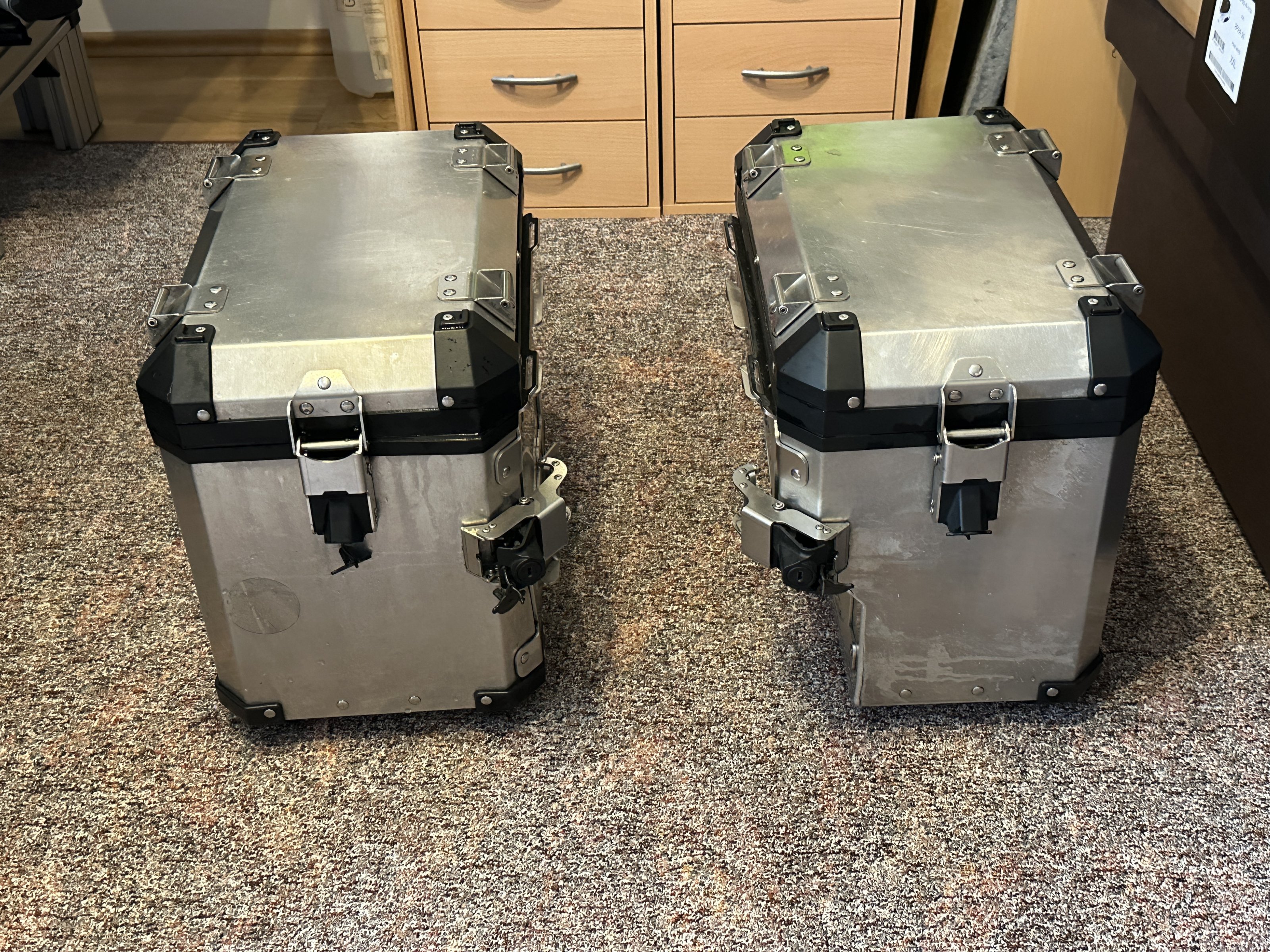 Hallo zusammen, da ich von meiner GS 1200 ADV K25 Bj12 auf eine GS 1250 ADV Bj22 gewechselt habe und an der neuen die originalen Alu Seitenkoffer leider nicht passen, möchte ich diese nun inklusive Schlösser hier zum Verkauf anbieten. Abholung und Besichtigung wäre in München möglich. Preislich hab ich mir 600 Euro vorgestellt. Bei Interesse einfach per PN melden.