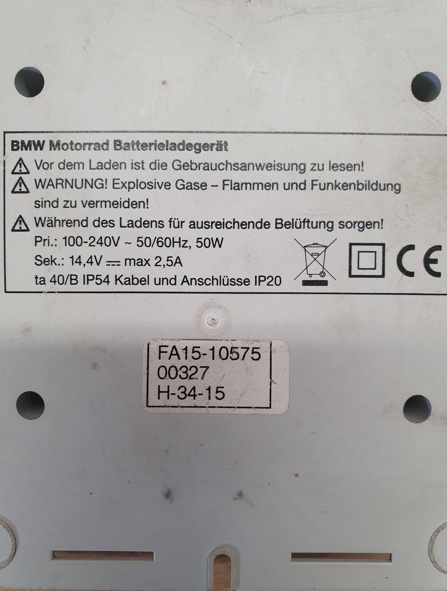 Gebrauchtes, aber gepflegtes und gut erhaltenes Original-Batterieladegerät von und für BMW-Motorräder, es dient auch als Ladeerhaltungsgerät für 12 V Motorrad Batterien. Damit können BMW Motorrad nass- und wartungsfreie Bleibatterien (Gel oder AGM) mit Kapazitäten von 6 bis 25 Ah über die BMW Bordsteckdose geladen und gepflegt werden.