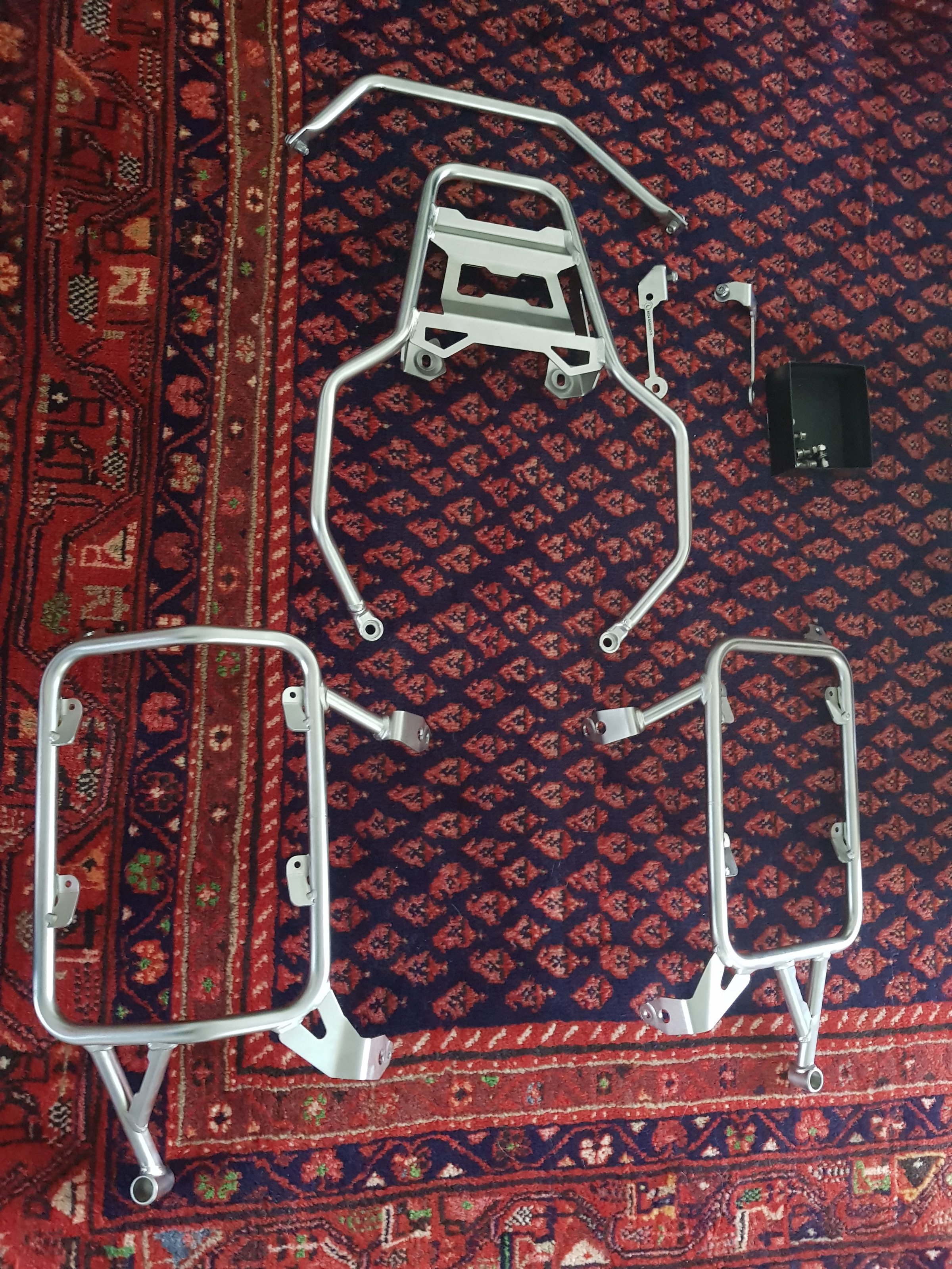 Wie im Titel genannt biete ich hier die original BMW Edelstahl-Kofferträger der R1250GS ADV an. Die Teile waren zwar montiert sehen aber aus wie neu.
