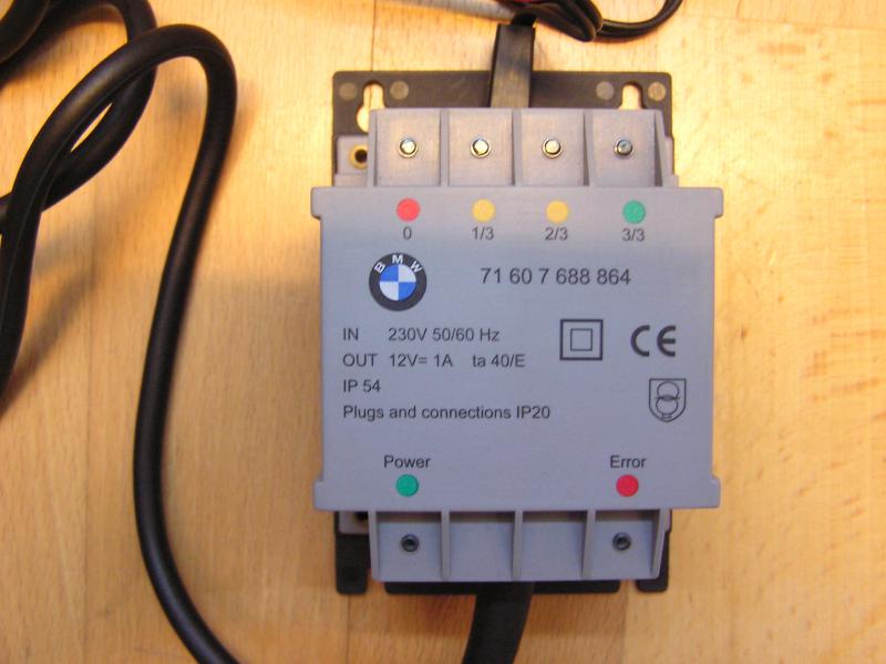 Ich verkaufe daher ein Original BMW-Batterie-Ladegerät, Teilenummer 71 60 7 688 864, welches speziell für das Laden der Batterie über die Bordsteckdose der R1200GS geeignet ist.