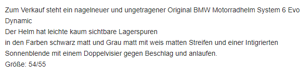 Zum Verkauf steht ein nagelneuer und ungetragener Original BMW Motorradhelm System 6 Evo Dynamic