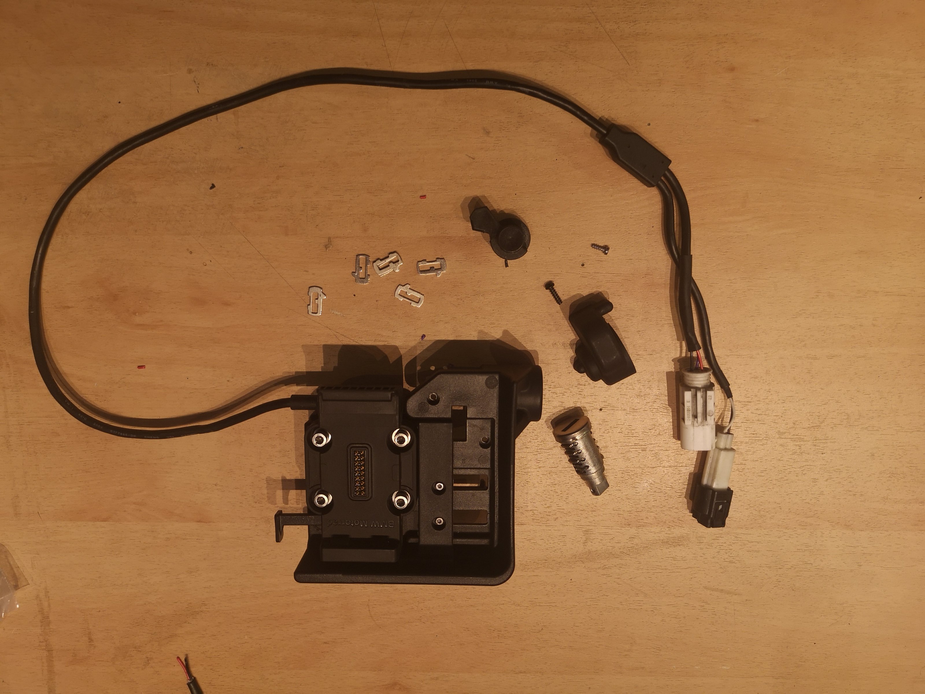 Verkauft wird ein Original BMW Mount-Cradle Navi Halter (abschließbar). Halterung ist passend für Navigator. Das Schloss ist ausgebaut und wird mit geliefert. Dazu lege ich noch ein paar Plättchen zum Einstellen auf Gleichschließung.