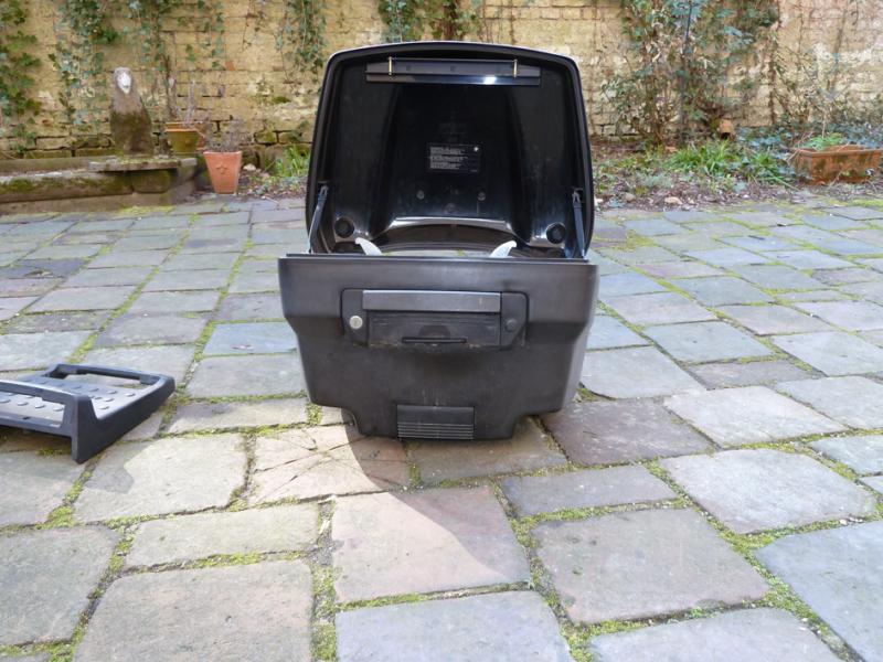 Das Top-Case und die Halterungsplatte sind für ihre 12 Jahre Gebrauch in gutem Zustand. Das Top-Case ist wasserdicht und voll funktionsfähig. Natürlich weist es außen sowie innen Gebrauchsspuren und ein paar Kratzer auf. Für meine Reisen hat es mir in den letzten Jahren sehr gute Dienste geleistet.