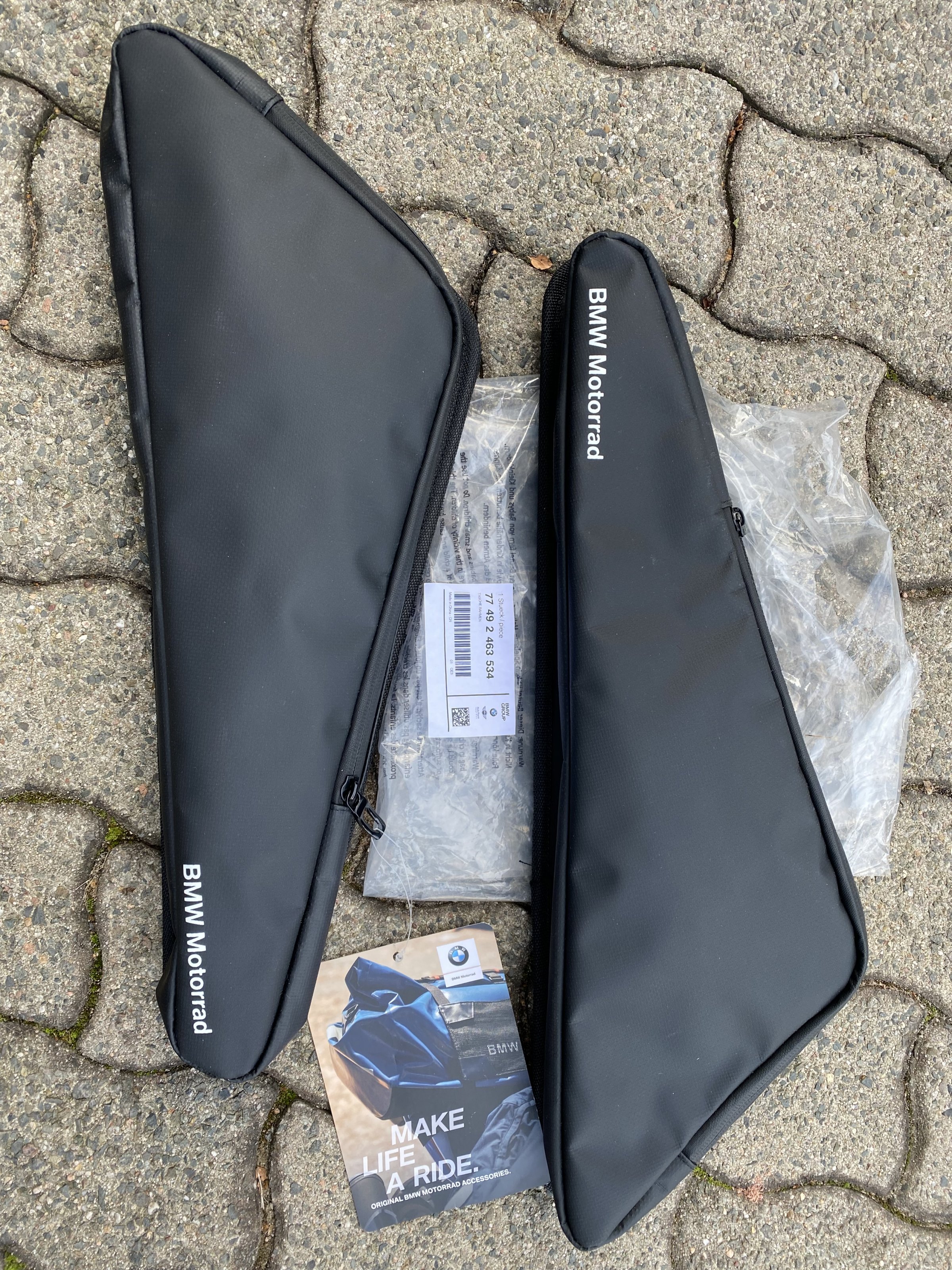 Diskutiere Original BMW Rahmentasche für R1250GS im Erledigte Biete-Anzeigen Forum im Bereich Biete (privat); Die beiden Rahmentaschen sind neuwertig, waren nie montiert, sogar das Schildchen ist noch dran. Neupreis sind um die 100 EUR.