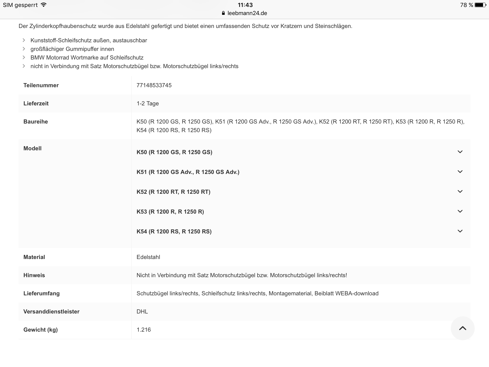 Verkaufe wegen Fahrzeugwechsel für R1200 LC GS/Adv. sowie R/RS original BMW Zylinderkopfhaubenschutz.
