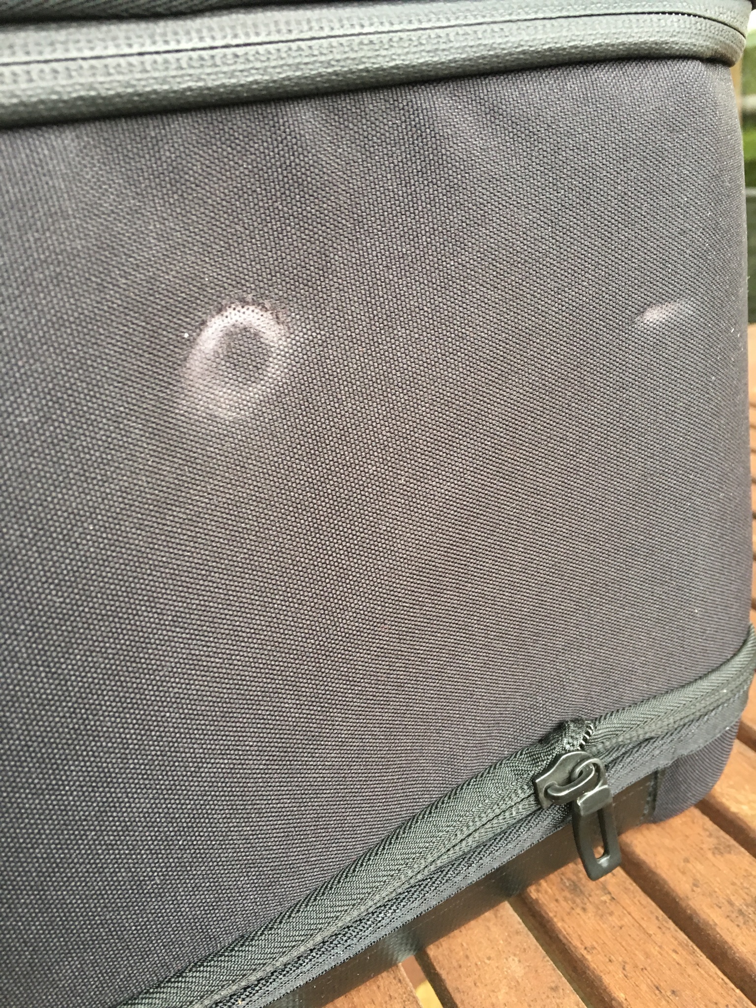 Die Innentasche ist 4 Jahre alt und hat auch Gebrauchsspuren welche von dem Verstellmechanismuss des Topcase stammen. Die Reisverschlüsse sind alle voll Funktionsfähig. Da ich diese Tasche permanent im Topcase hatte ist leider der Schultergurt nicht mehr auffindbar.