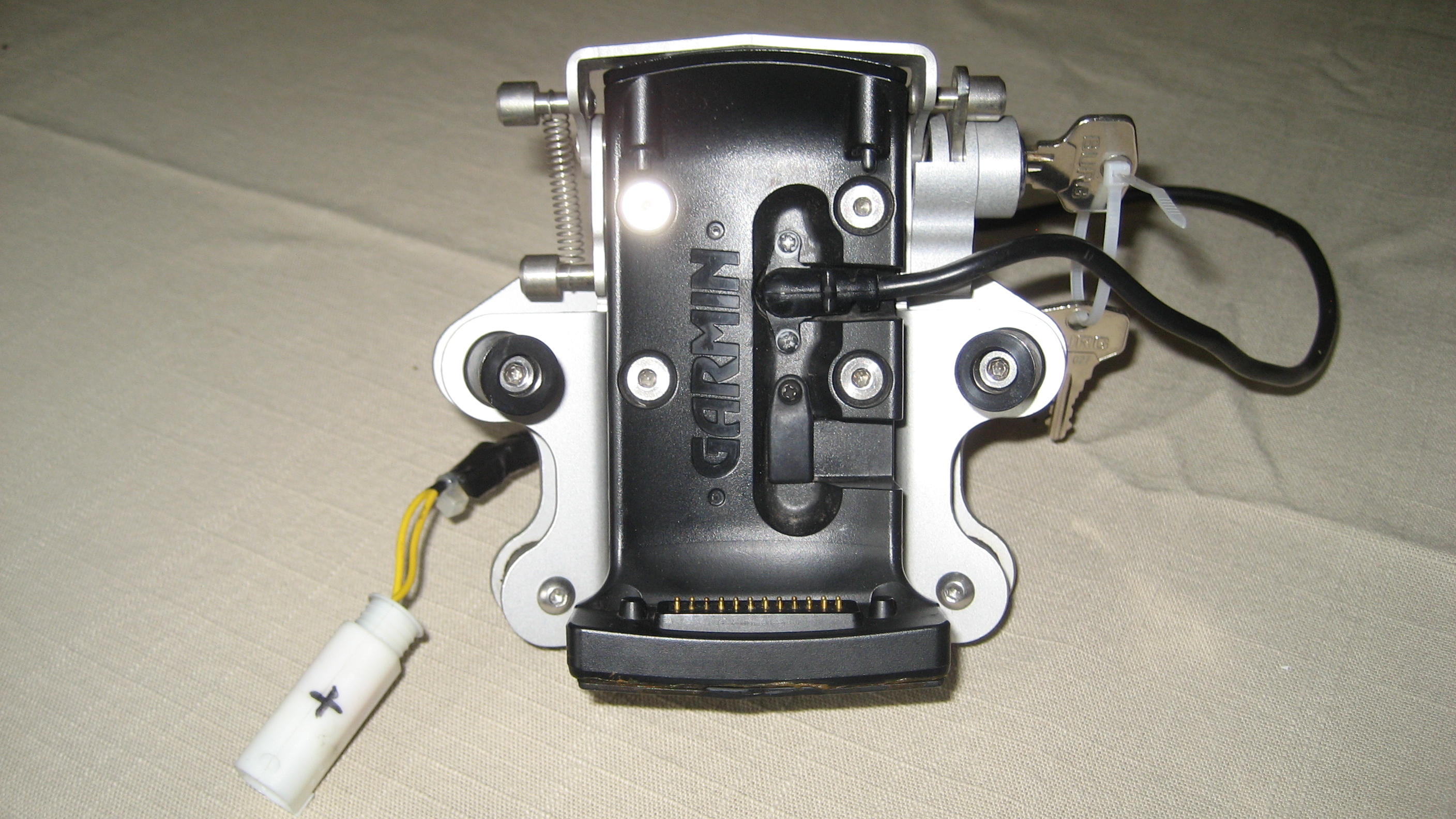 Original Touratech Lenkerhalterung für Garmin zumo 550 abschließbar, gefedert, schwarz. Die auf den Bildern zu sehende Original "Halteklammer" für den zumo 550 sowie das Anschlusskabel (mit Stecker für die BMW GS 1200, Stecker auswechselbar) wird mitgeliefert.