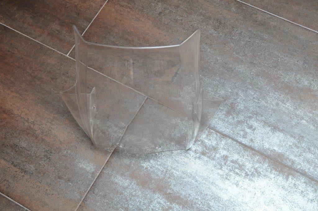 Aber falls jemand sein Windschild lackieren will oder verkleinern, um den Fahrtwind zu testen, dann ist dieses Schild noch gut geeignet. Es ist nichts gebrochen o.ä.