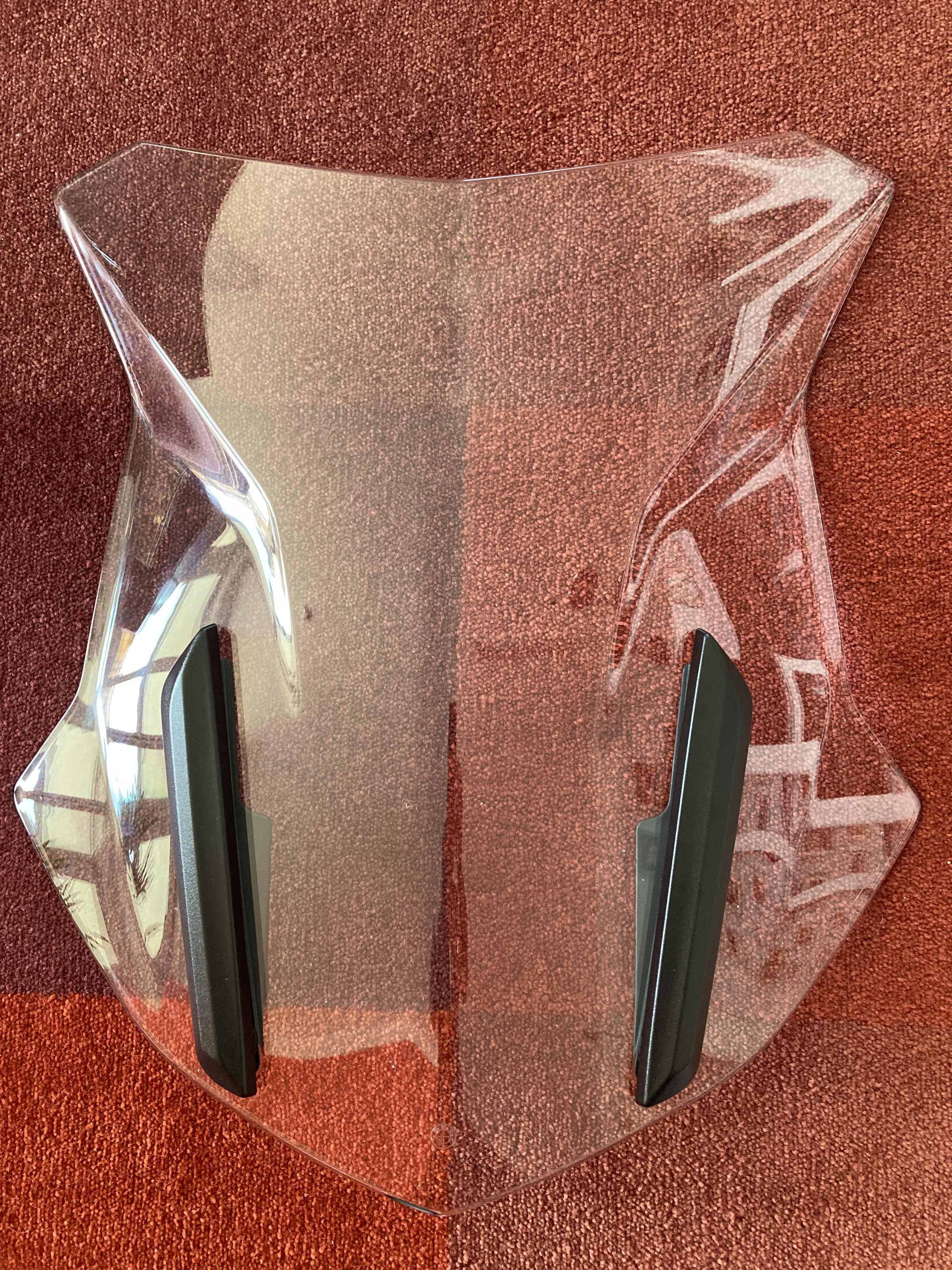 hatte das Windschild hier von einem Forumskollegen erworben und nur kurz zum Testen an meiner normalen GS angebaut. Es ist leider nichts für mich, es "wummert" im Helm in jeder Einstellung bei höherer Geschwindigkeit. Evtl. passt es bei anderer Körpergröße besser. Der Zustand ist neuwertig mit nur geringsten Gebrauchsspuren, ohne Kratzer.