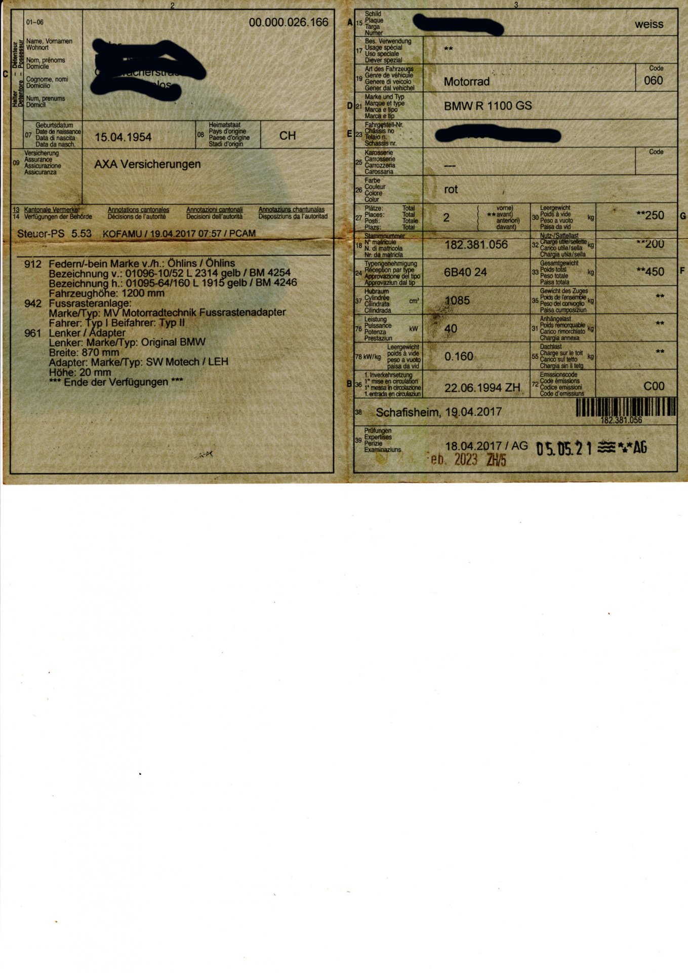 Wie erklärst Du meine Einträge im Fahrzeugausweis, im Zuge einer periodischen Kontrolle, mit deutschen ABE's?..TUV