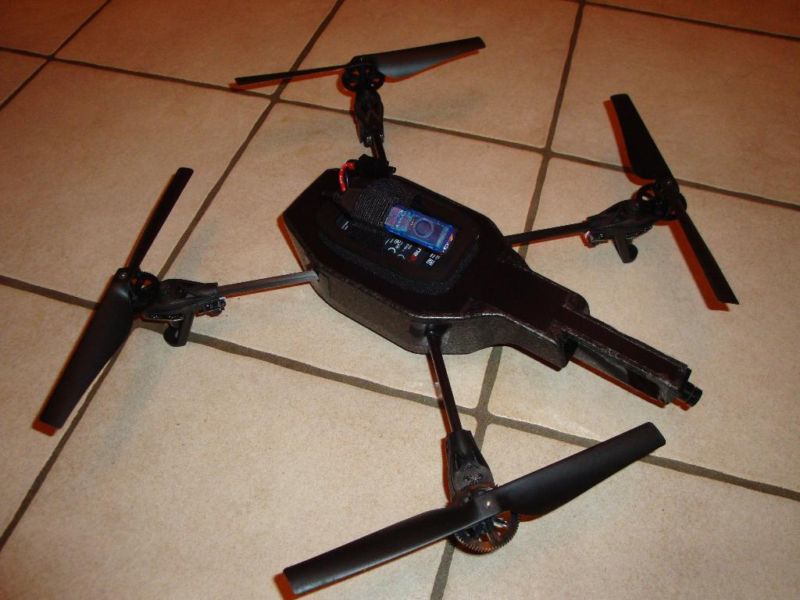 An der Drone wurde die HD Frontkamera auf -5Grad Blickwinkel umgebaut, so hat man beim fliegen ein besseres Bild nach unten und nicht wie normal nur geradeaus.