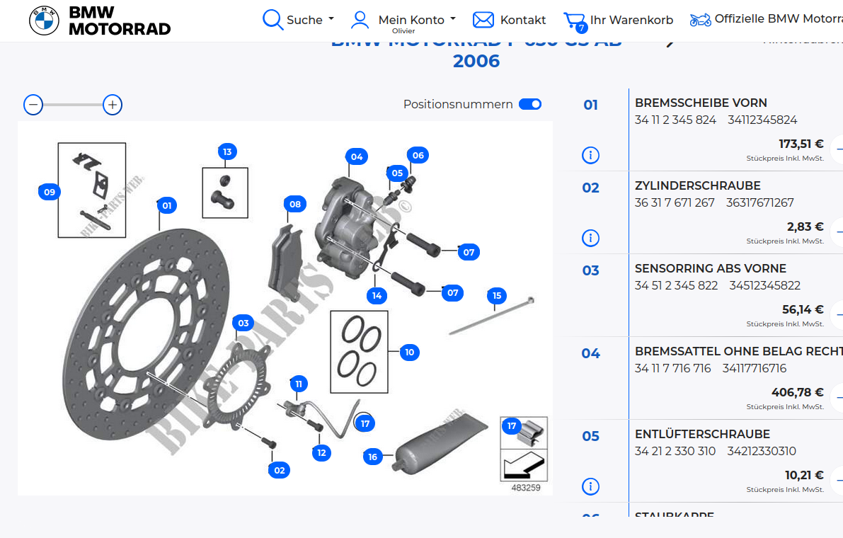 Ganz seltsam ist das bei BMW im Teilekatalog für meine F650GS Twin Modell 2009 eine schwimmend gelagerte Bremsscheibenart abgebildet ist, anders als die montierte feste "Billigbremsscheibe".... Die angegebene Teilenummer 34112345824 verweist jedoch wiederum auf die ungeteilte, feste "Billigbremsscheibe" (die es wohl auch von Brembo Aftermarket gibt, mit anderer KBA Nummer)