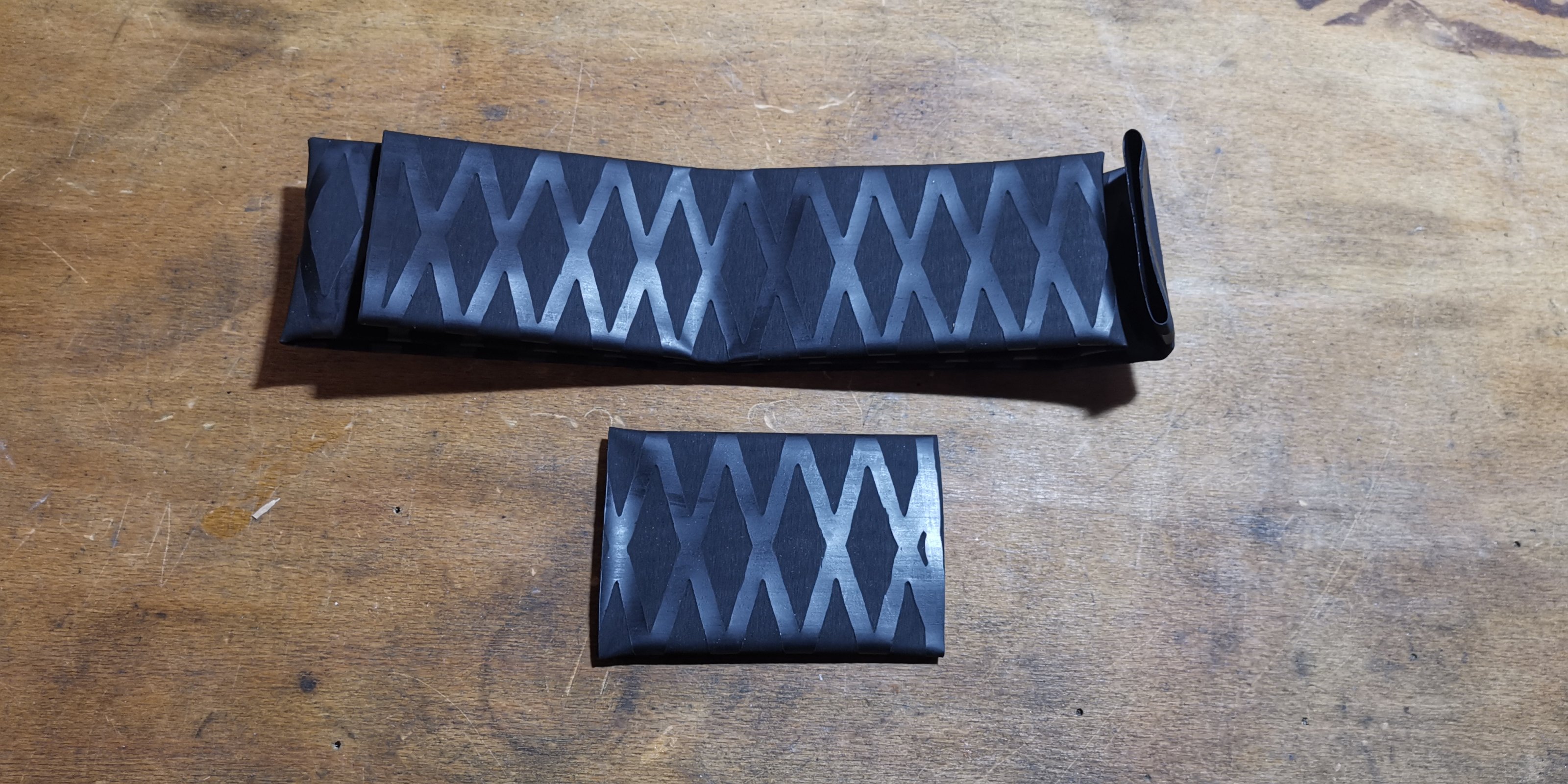Der eine ist 20 mm, der andere 45 mm im Durchmesser. Beide schrumpfen bei Wärme 2:1.