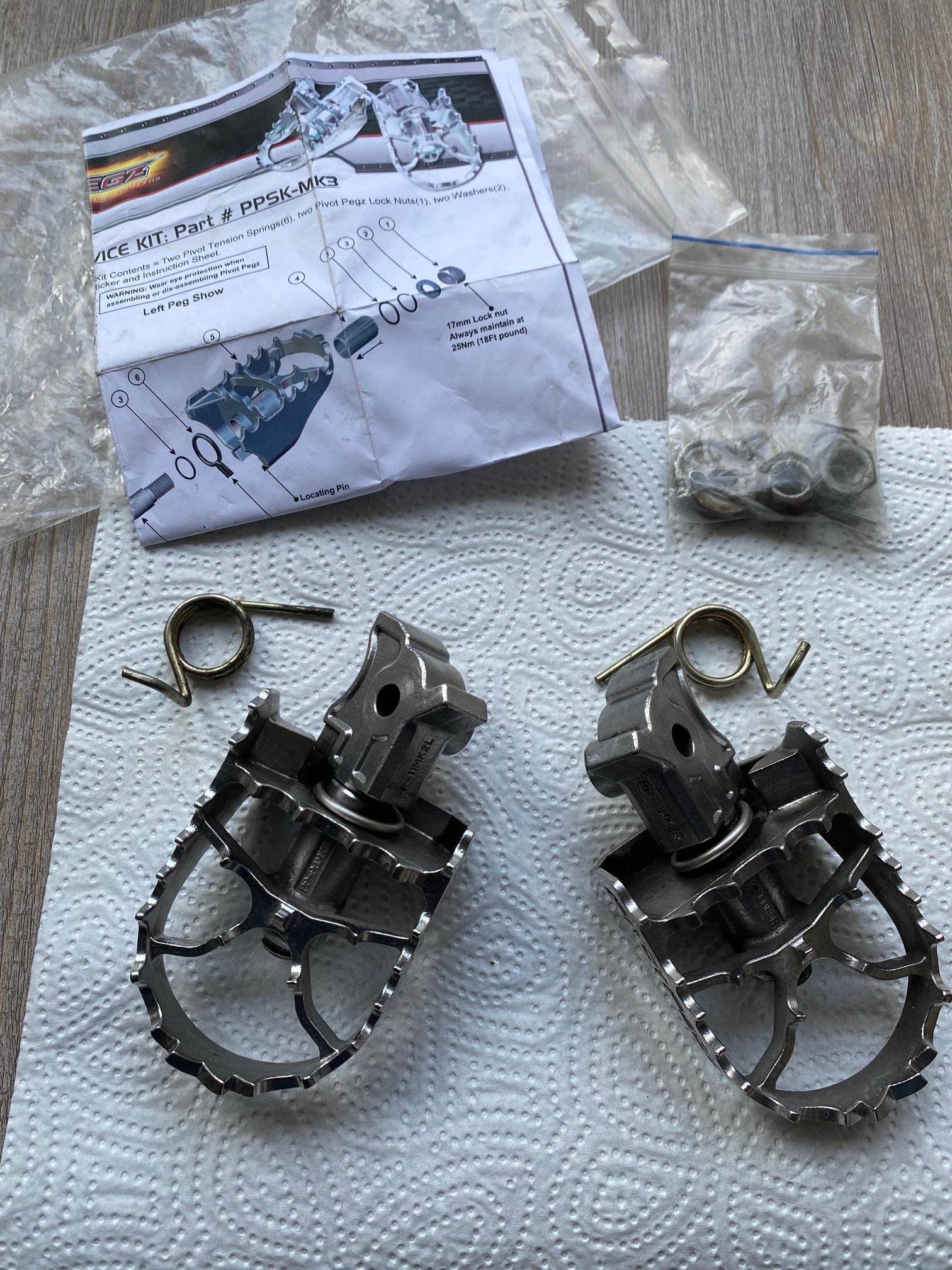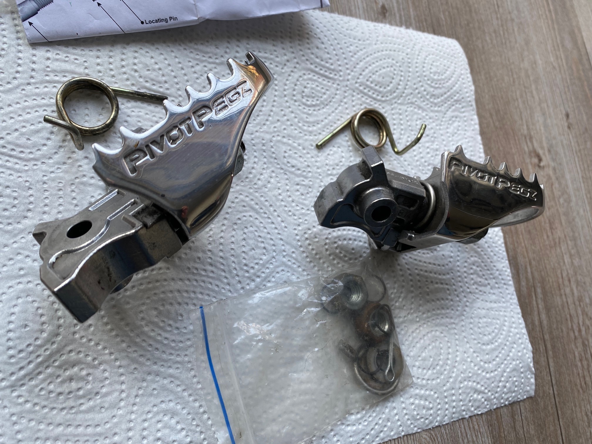 Verkaufe ein Paar Gelenk-Fußrasten Pivot Pegz MK3 mit Anbaumaterial (siehe Foto), waren montiert an einer BMW R1200GS K25, sehr guter Zustand, natürlich mit Gebrauchsspuren, Euro 89,- Eine Besichtigung/Abholung vor Ort (in 27753 Delmenhorst oder 27432 Bremervörde) wäre mir am liebsten.