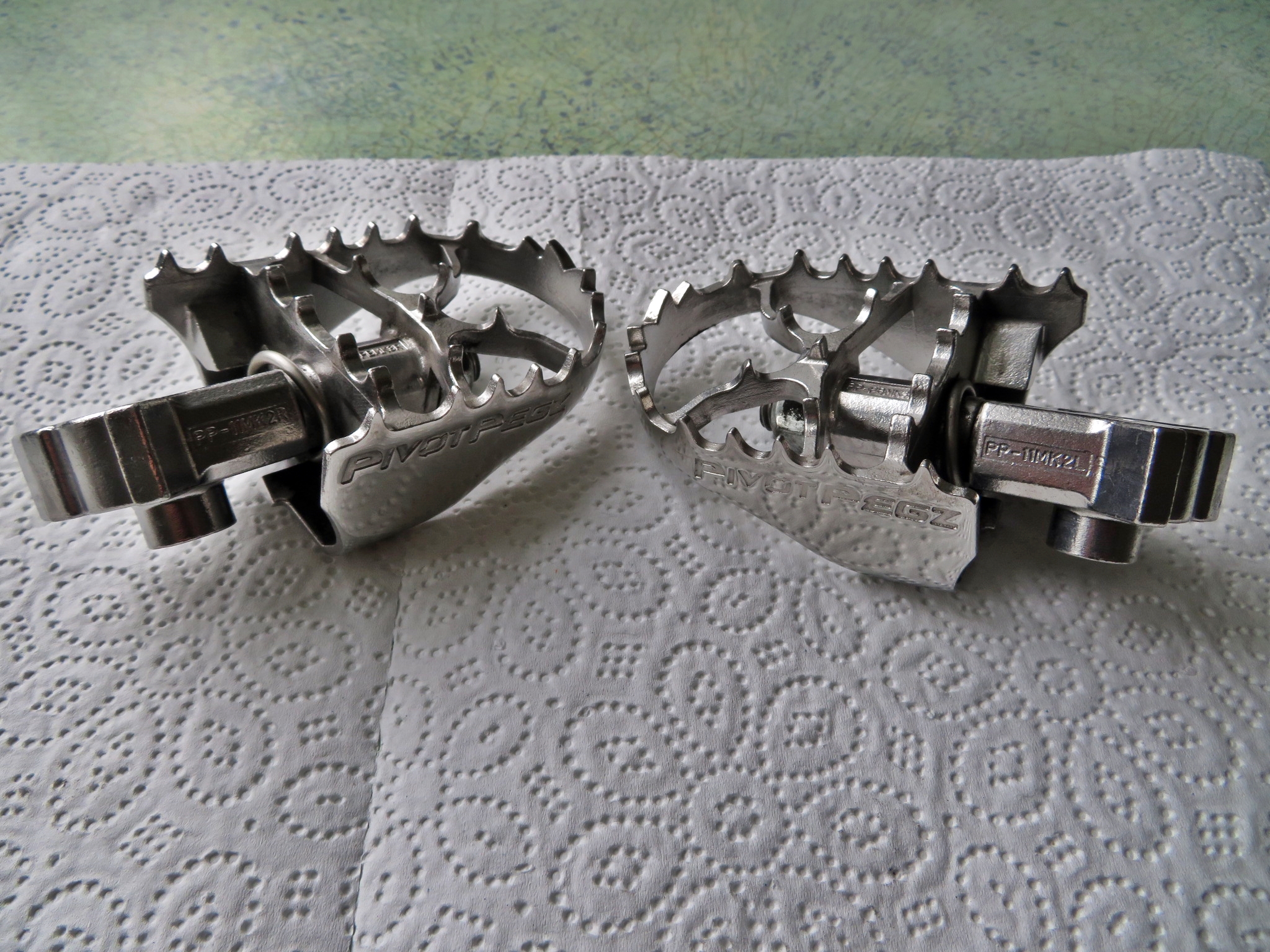 Pivot Pegz MK3. Die ultimative Edelstahlfußraste für alle. Die 60mm breite Auflage sorgt für sicheren und bequemen Stand. Durch ein Federgelenk gehen die Rasten bis zu 20 Grad mit dem Fuß mit. Sehr angenehm. Da ich kein Gelände fahre, habe ich mir die Kunststofftopper dazu gekauft. Das schont die Sohle der Schuhe und ist auf langen Strecken sehr angenehm.