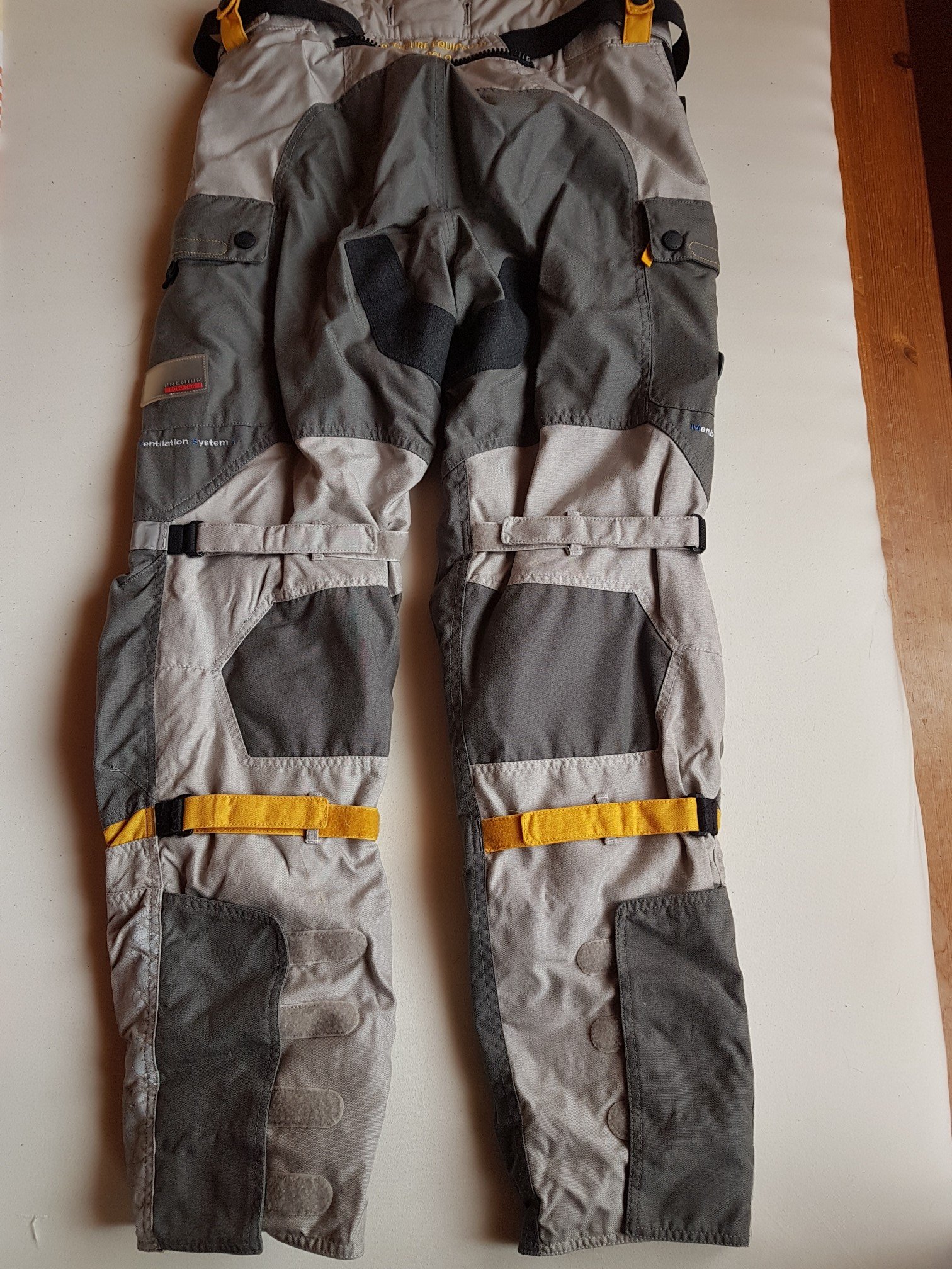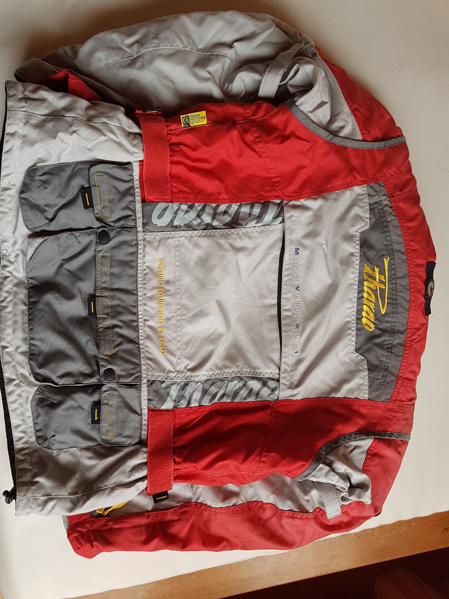 Gr. L 52/54.Ist nicht das neueste Modell, aber ein damals beliebter Klassiker. Mit Protektoren in Rücken, Schulter, Ellenbogen und Knie. Das Rot der Jacke ist an manchen Stellen von der Sonne ganz leicht ausgeblichen. Dennoch ein wunderschöner und robuster Anzug.