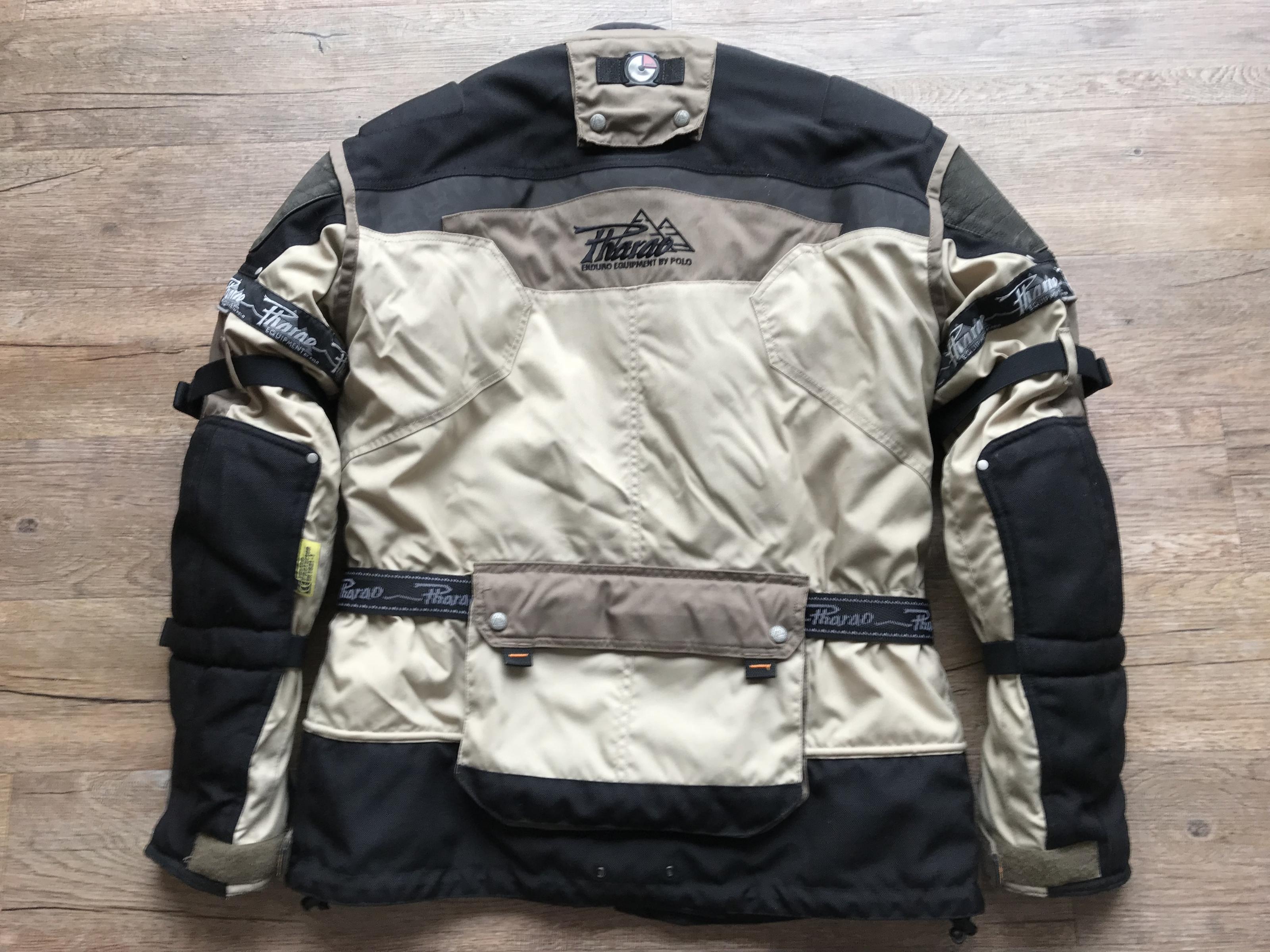 Die Jacke hat in den Schultern und Ellenbogen Protektoren. Es gibt auch eine Rückentasche für einen Protektor, diese ist aber leer, da ich immer eine Schildkröte gefahren habe.