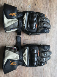 da ich zu meiner "neuen" GS jetzt auch neue Klamotten in der richtigen Größe gekauft habe, ich brauche leider die Übergrößen 98 und 102 damit es wirklich richtig sitzt, sind meine alte Jacke und Hose über. Da die Handschuhe farblich zum Anzug passen und der neue gezwungenermaßen schwarz/neon ist, biete ich auch diese an.
