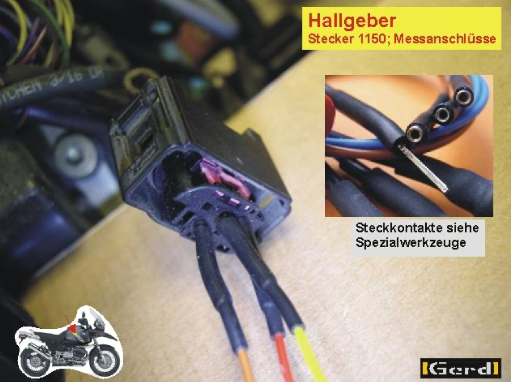 So, Test des Hallgebers gemäß Powerboxer-Anleitung scheitert am super dämlichen Stecker mit Kontakten in Stecknadelgröße. Wie soll man da bitteschön die Prüfleitungen anstecken? Gerd hat hierzu irgendwas gebastelt80DA3E28-FE6A-46FE-AA8A-C482D2655BA7.jpeg, siehe Foto. Hat jemand eine Bastelidee?