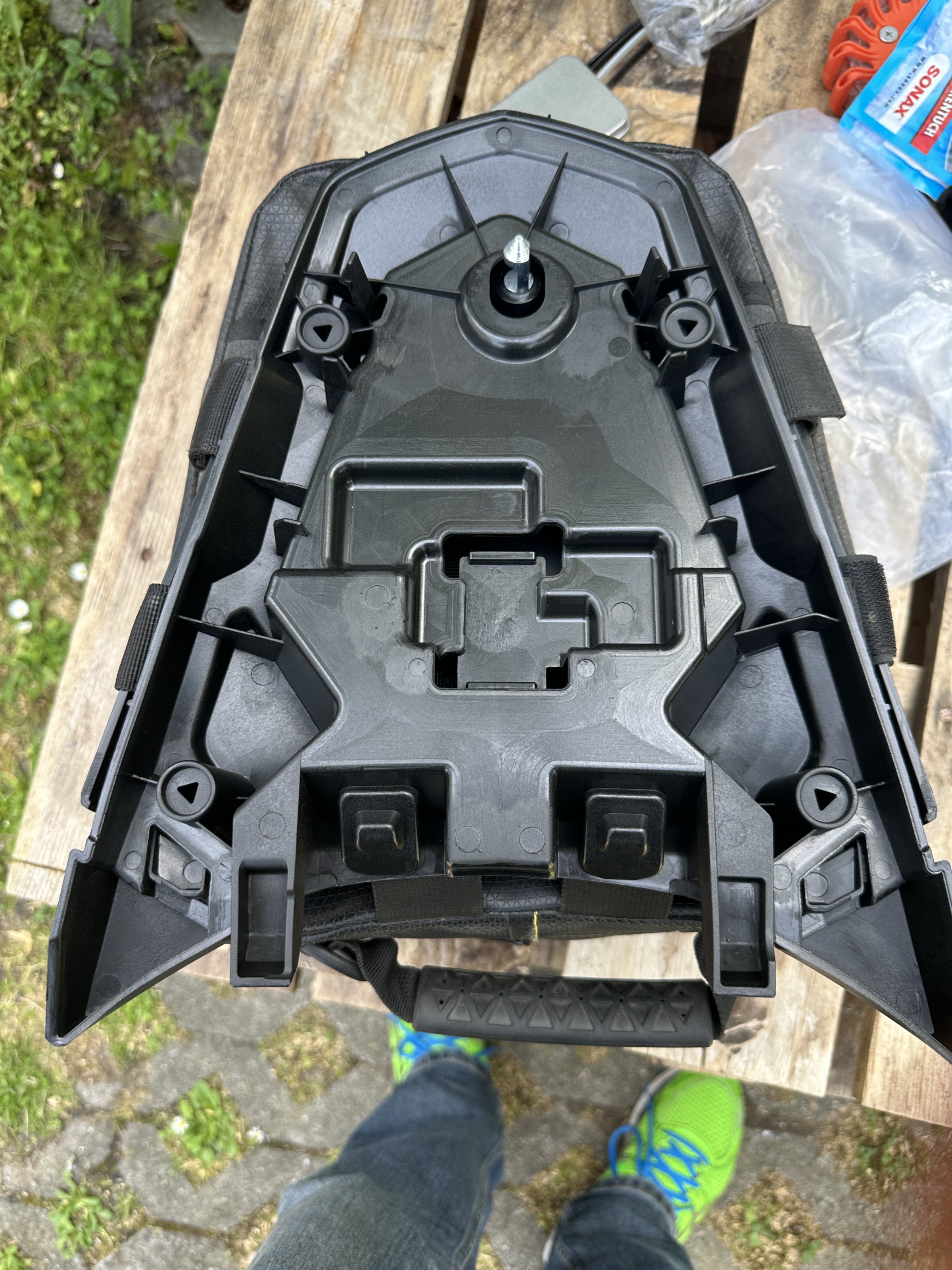 Vom Soziussitz habe ich die Trägerplatte abgeschraubt und möchte sie als Basisplatte verwenden.