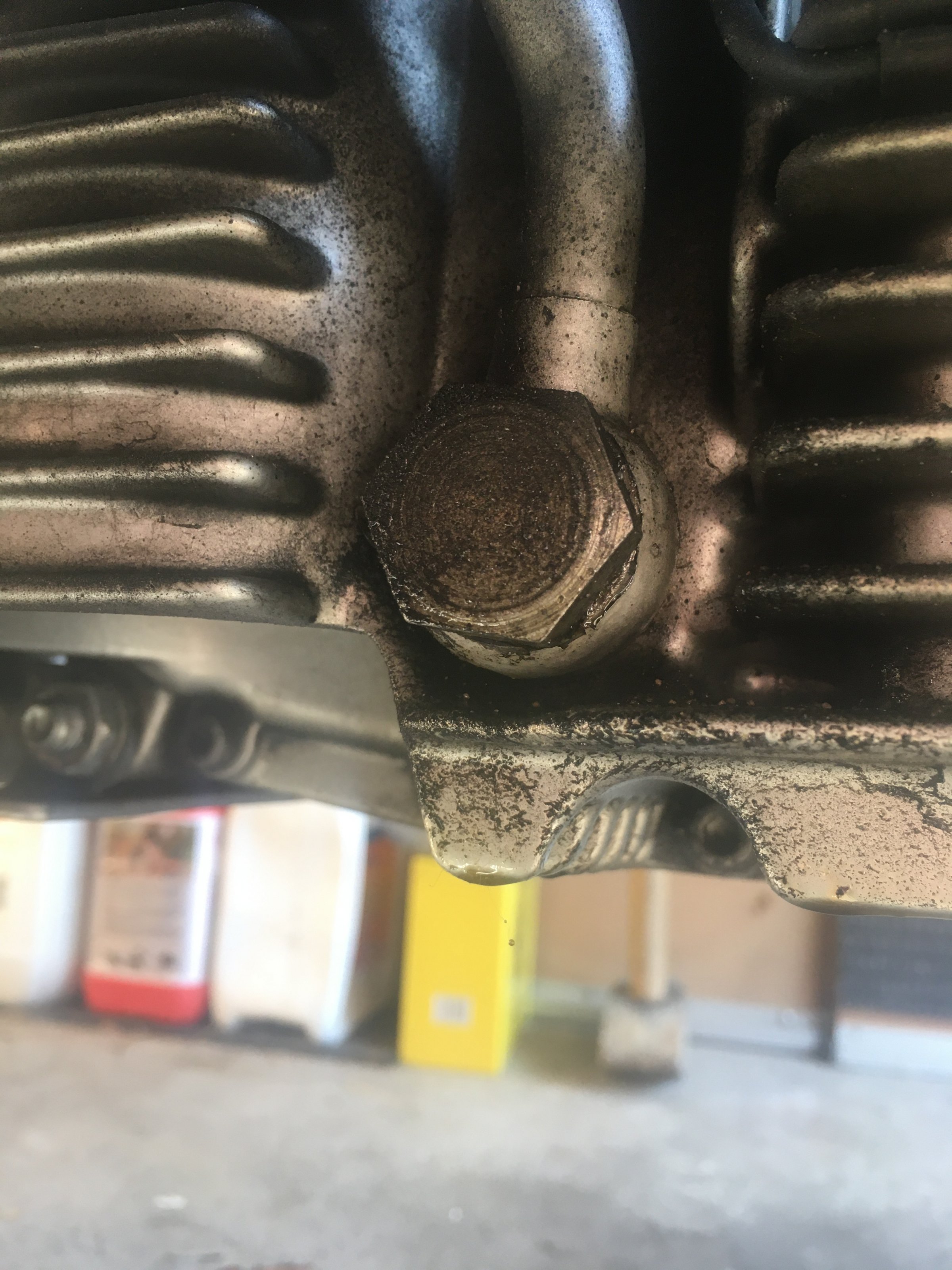Am Anfang war noch etwas rundes vorhanden. Also Motor warm gefahren, WD40 drauf und mir guter Zange versucht den Rest aus dem Motorblock zu drehen. Nada, nun ist das Runde auch noch abgedreht und der Bolzen ist Plan mit dem Alu.