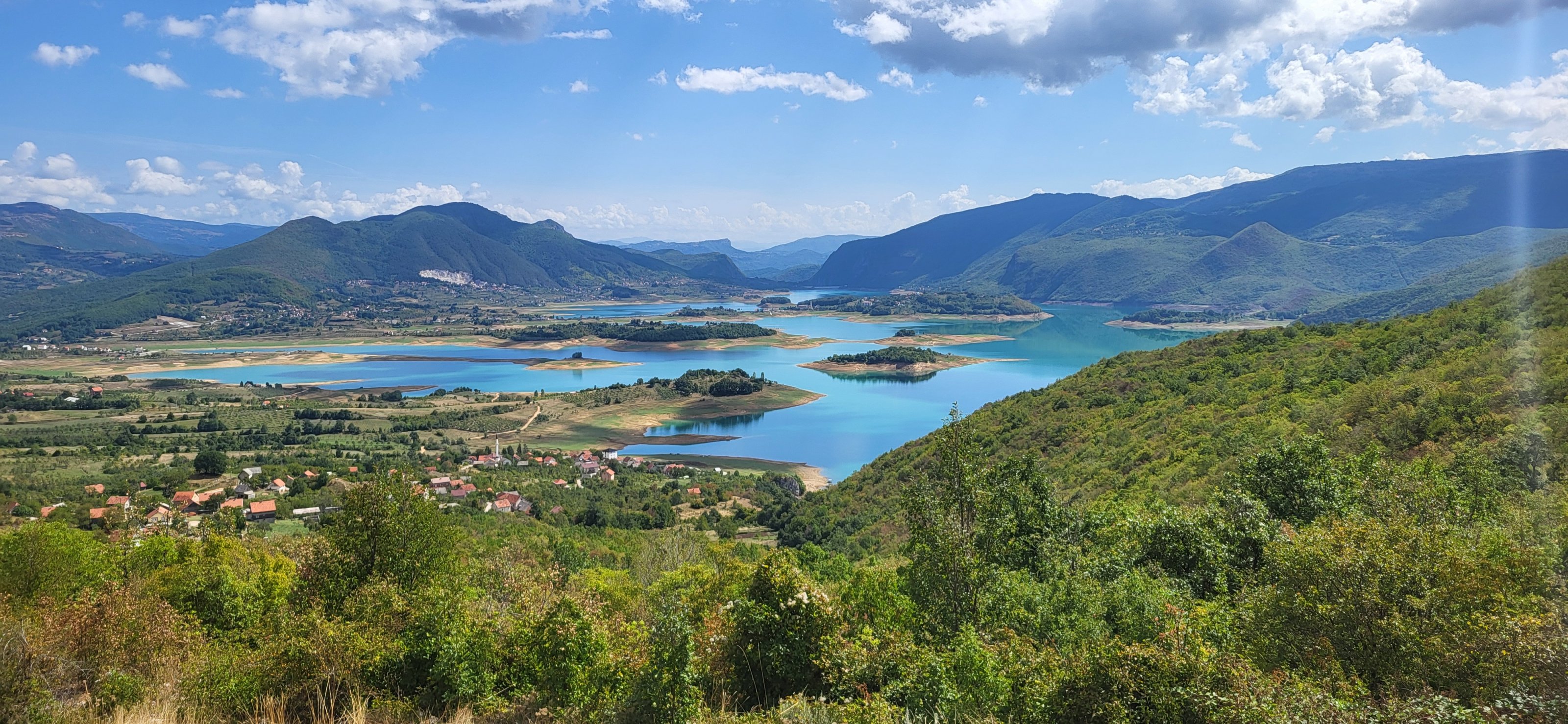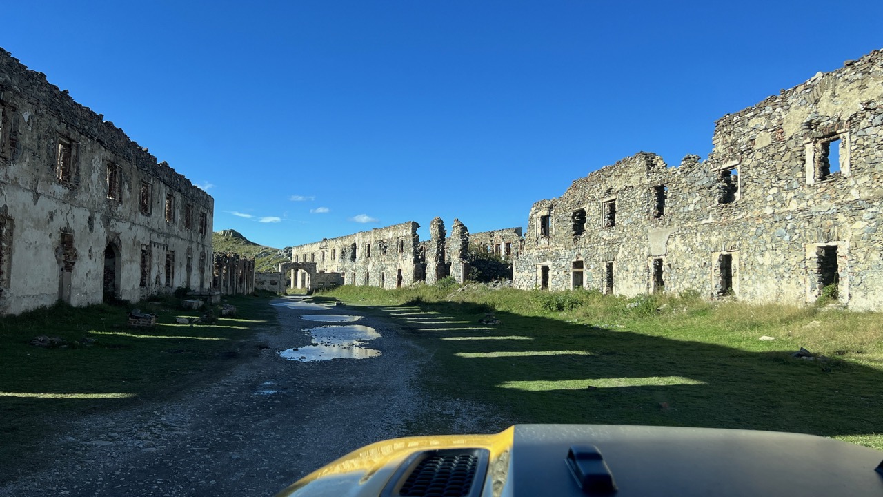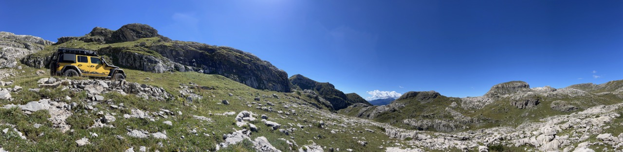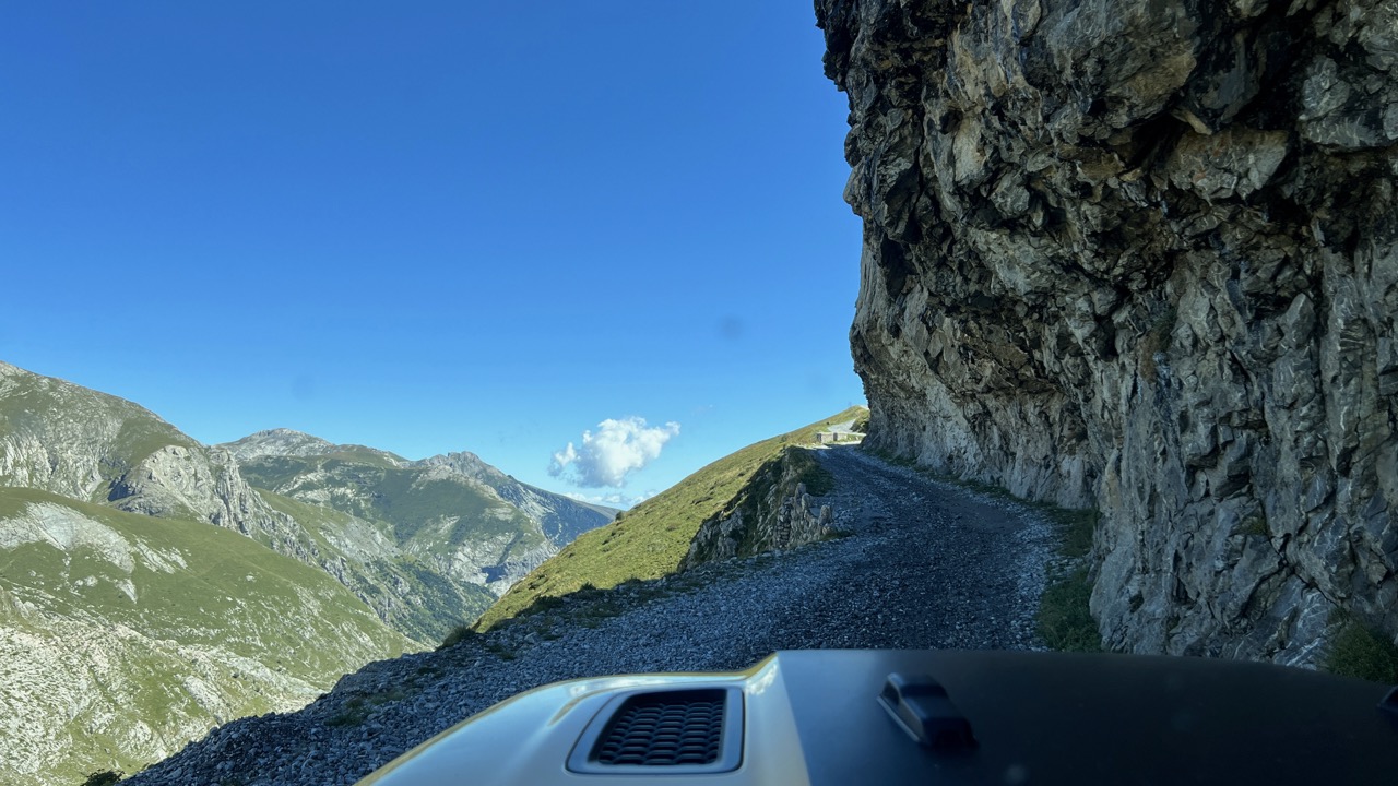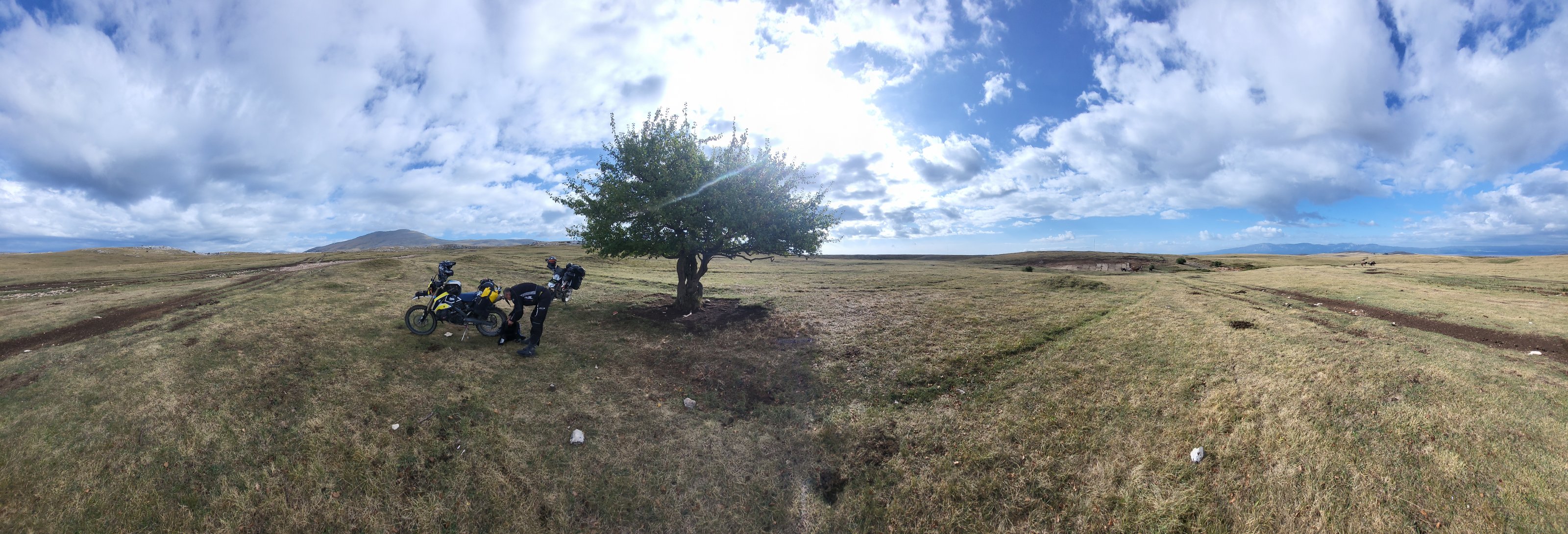 Der Reifenprofi wechselte als den Reifen auf Balkanart : Alte Pelle runter und neue drauf aber ohne den Schlauch zu lösen bzw. zu entfernen, na ja der wird schon wissen was er da macht. Mit neuer Decke ging es dann wieder rein in den TET, als wir dann nach 30KM Schotter wieder auf Aspalt kamen meldete Ben von hinten über Sena das der Reifen Druck verliert, also Stopp und Kompressor raus um wieder aufzupumpen. Wir sind dann weiter gefahren, ich ab jetzt hinten mit wachen Auge auf den Reifen und wir sind dann noch bis Lukomir gekommen wo dann endgültig Schluss war. Lukomir ist ein ganz kleines Dorf in Bosnien was durch Valle und Co erst richtig bekannt wurde und mittlerweile als Touristischer Hotspot gilt, hier oben finden man alles an Offroadhelden ob Jeep, Quad oder Enduro.