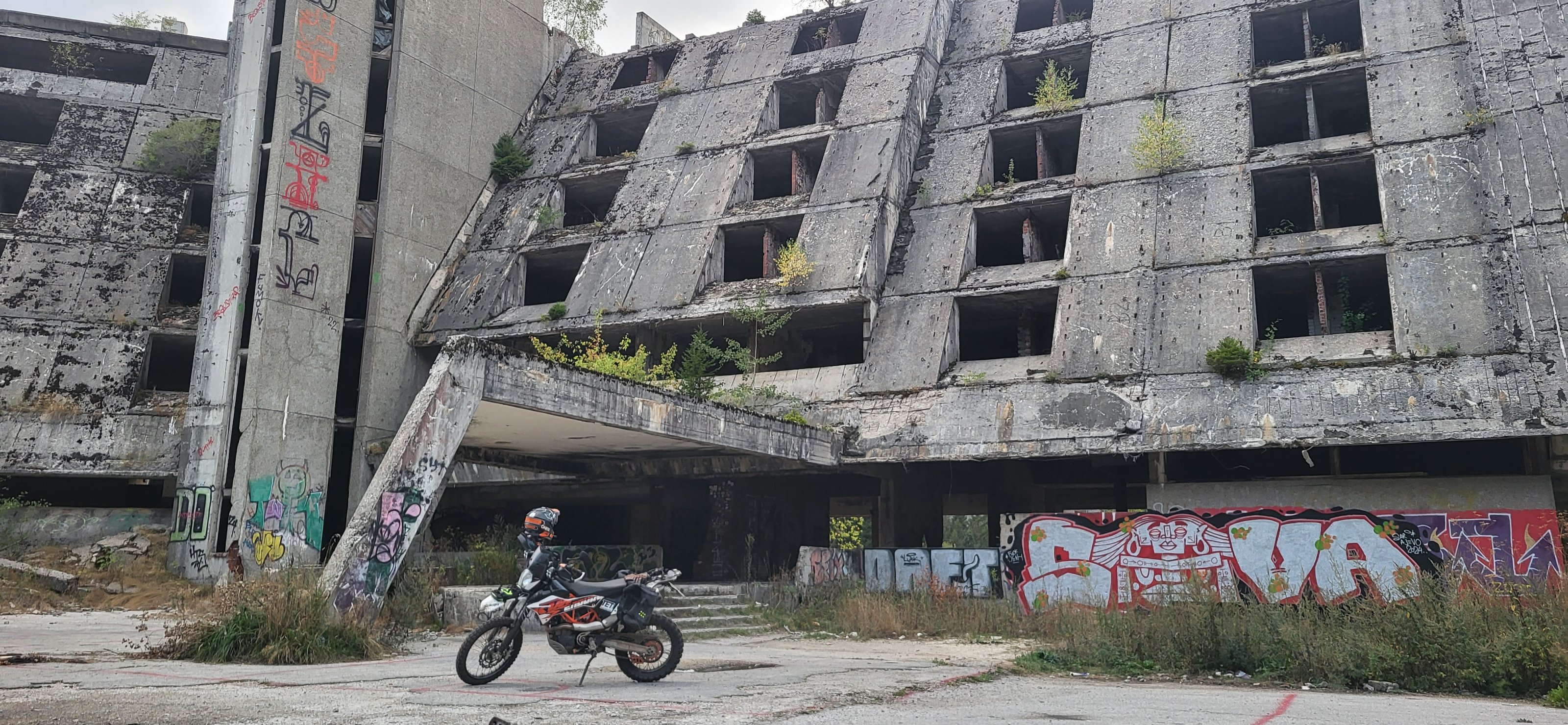 Zur Abenteuergeschichte noch: Ben hatte einen gebrauchten Mitas 10 hinten montiert der beim Start wirklich gut aussah um damit die Tour zu machen, ob es num an dem Mangart und co. oder an den Temperaturen hier unten gelegen hat wissen wir nicht. Wir sahen täglich das Gummi schwinden, also auf nach Sarajevo der einen Reifen liegen hatte und Termin für Samstag Morgen klar gemacht da das Wochenende vor der Tür stand. die Unterkunft in Sarajevo war ein kleiner Griff ins Klo, laut Booking eine tolle Bewertung mit Frühstück und so.