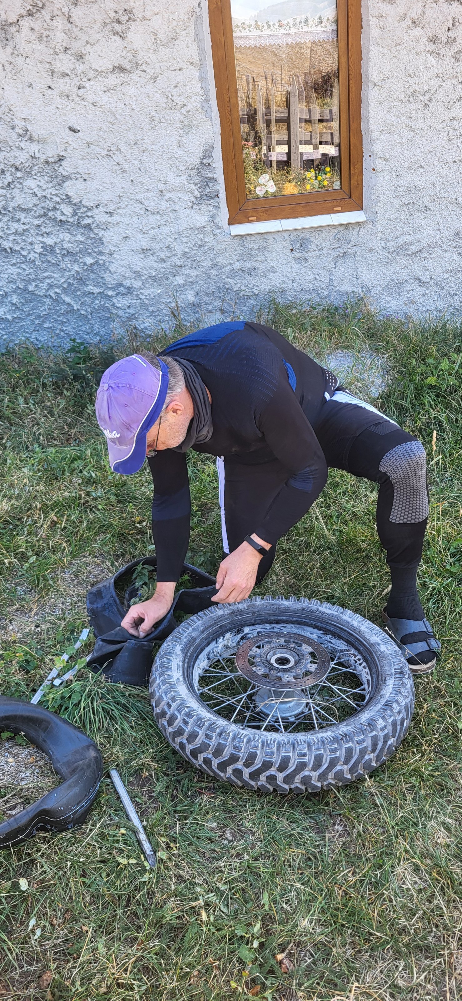 danach ginge weiter mit Reifen öffnen und Schlauch entfernen mit dem Ergebnis was wir uns schon dachten dass dass Ventil eingerissen war, es hatte also seinen Grund das wir beim Wechsel schon Misstrauig waren. OK, Adventurerdriver haben natürlich Ersatzschläuche mit :-) neuen Schlauch eingezogen und aufgepumpt, Ergebnis: gewonnen und wir konnten die Reise fortsetzen.