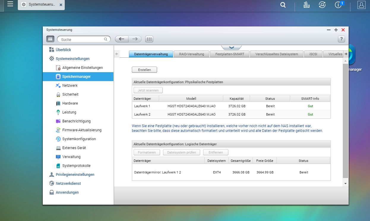 SMART Status beide platten gut (siehe bild), beim QNAP neuestes BS update installiert - wird aber sowieso von Qnap automatisch gemacht