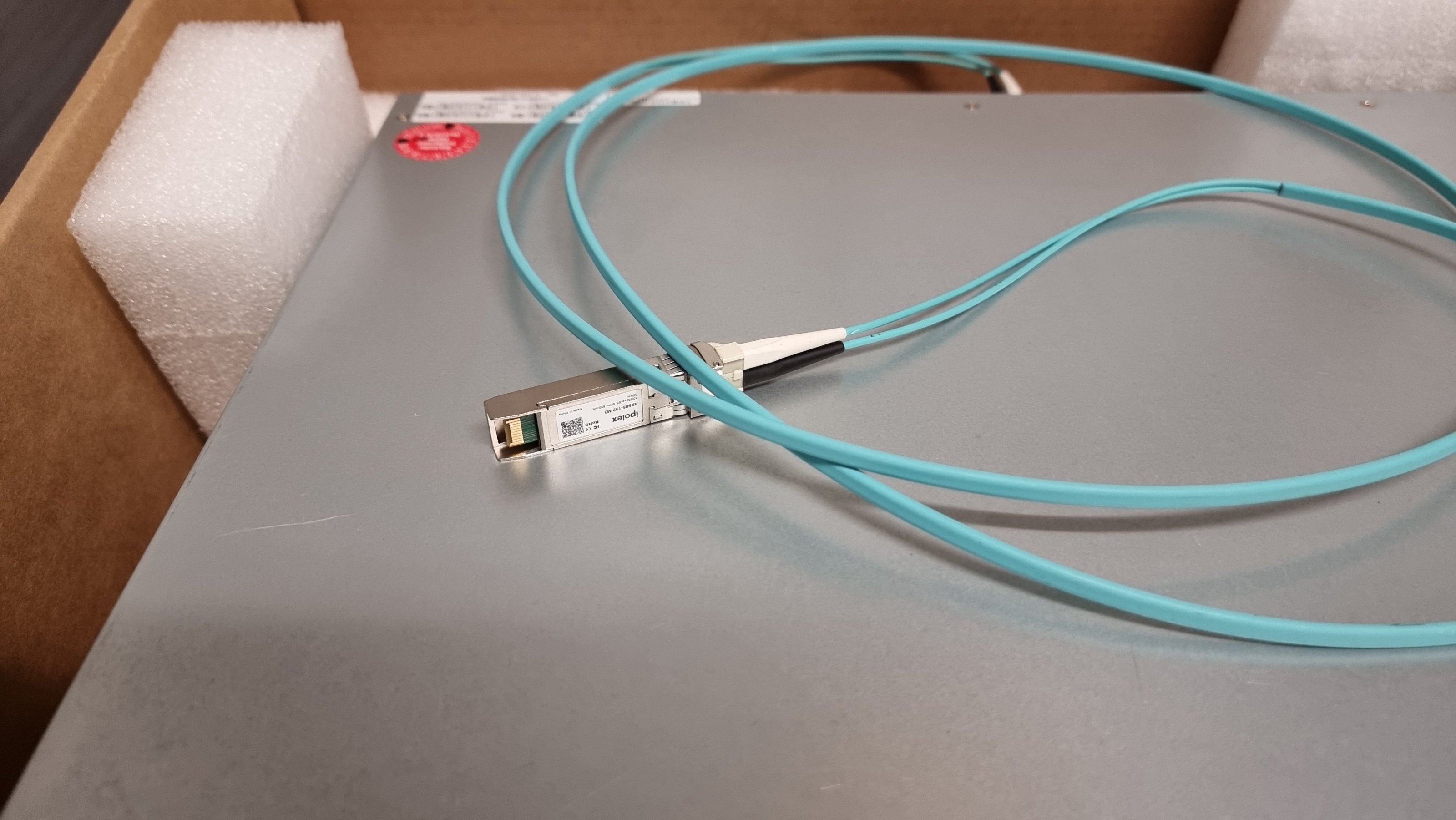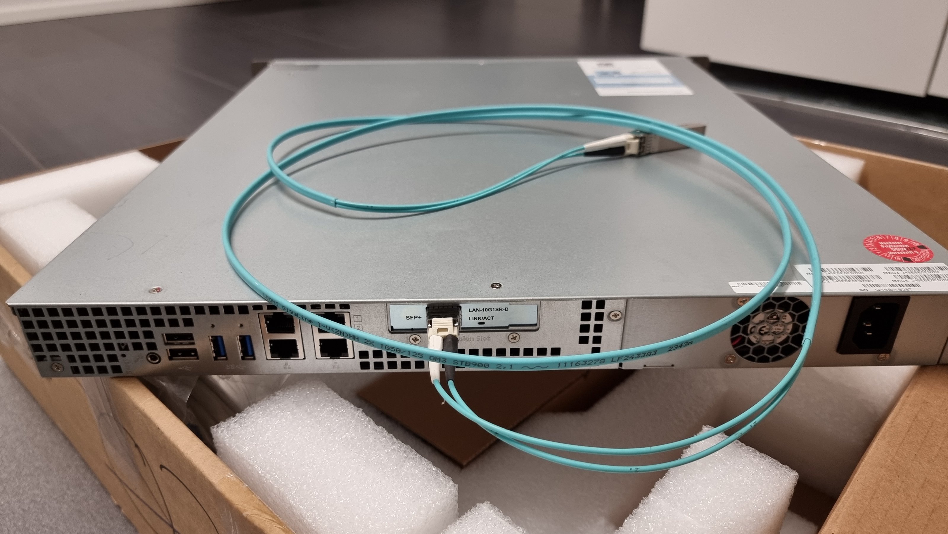 Es ist mit einer 10-GbE Karte für SFP+ Module ausgestattet.