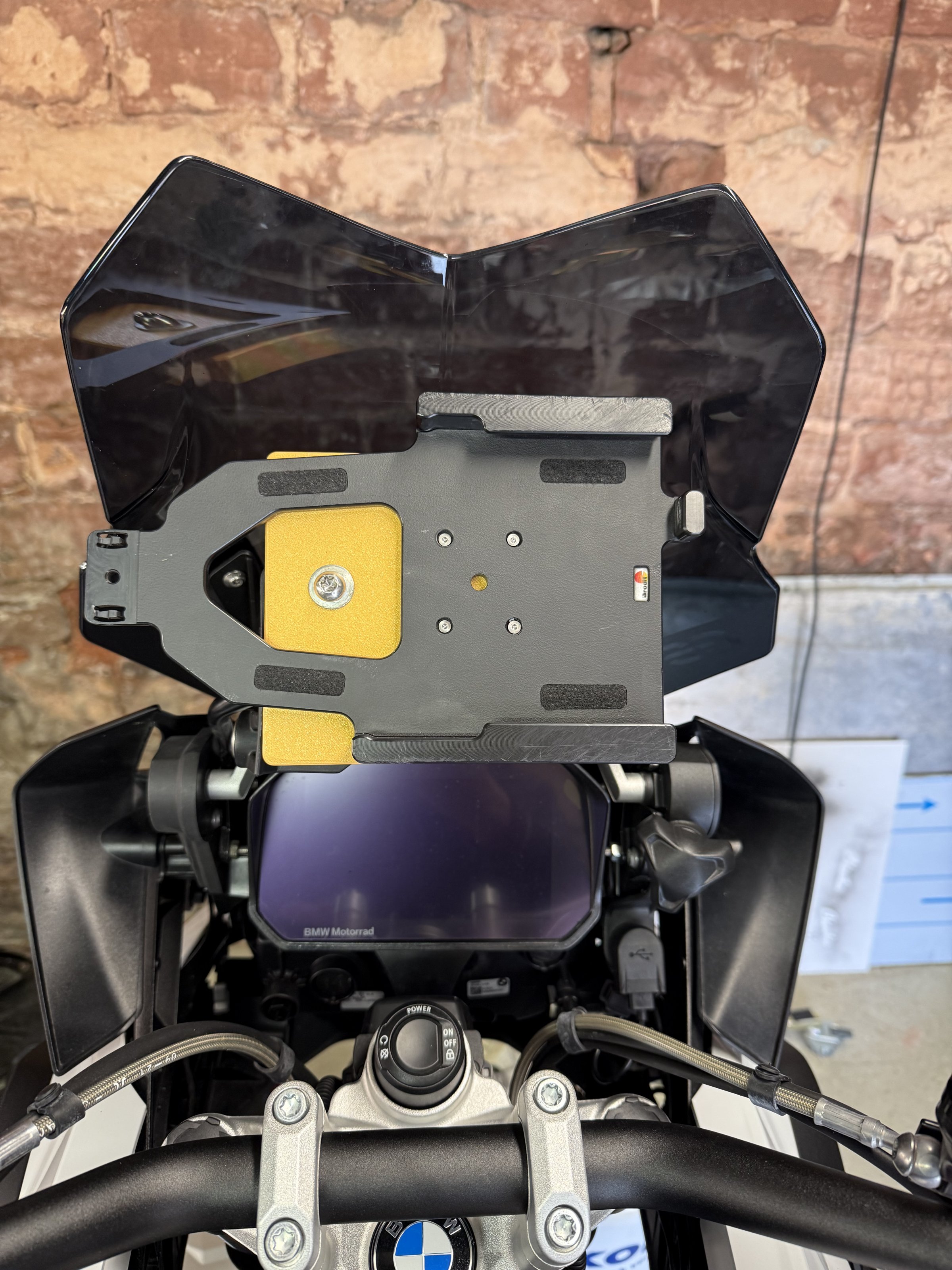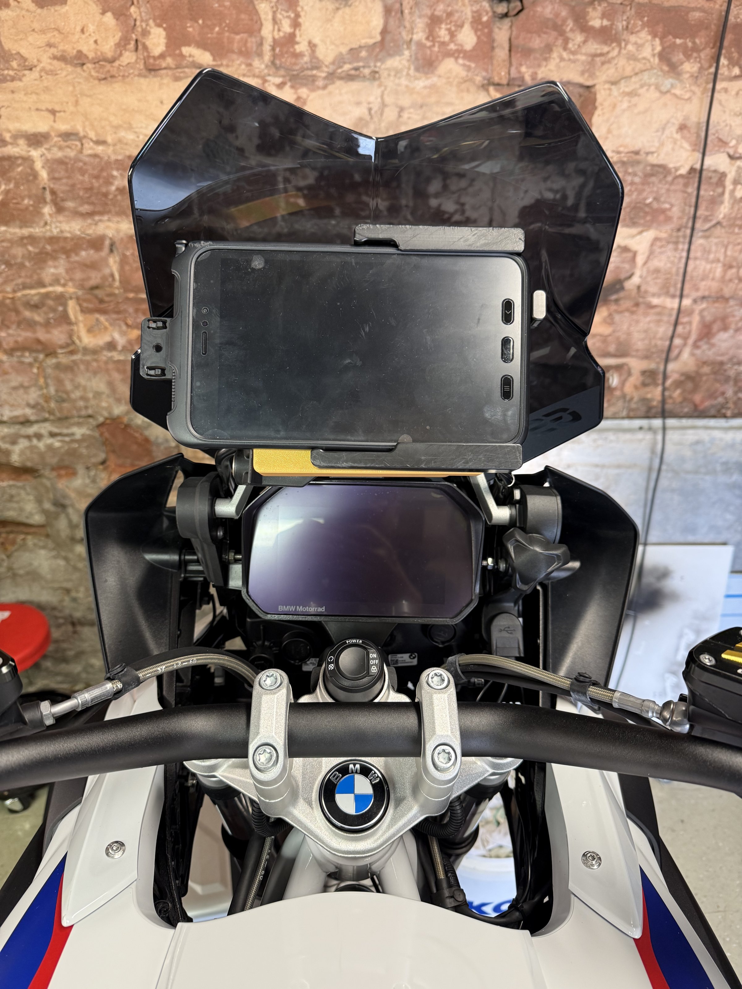 Ich hatte mir lange den Kopf zerbrochen um das Teil elegant auf der GS anzubauen, damit darauf die connected ride Software, und ein wenig mehr laufen kann.