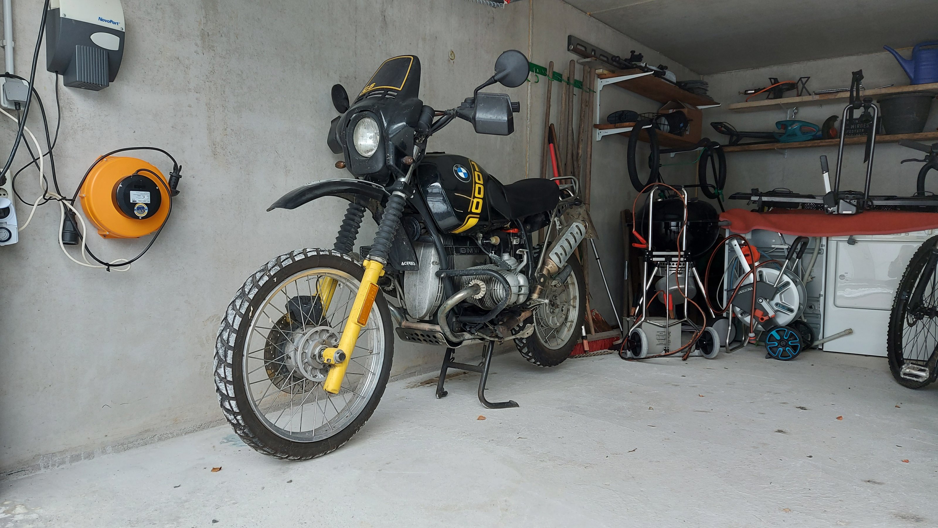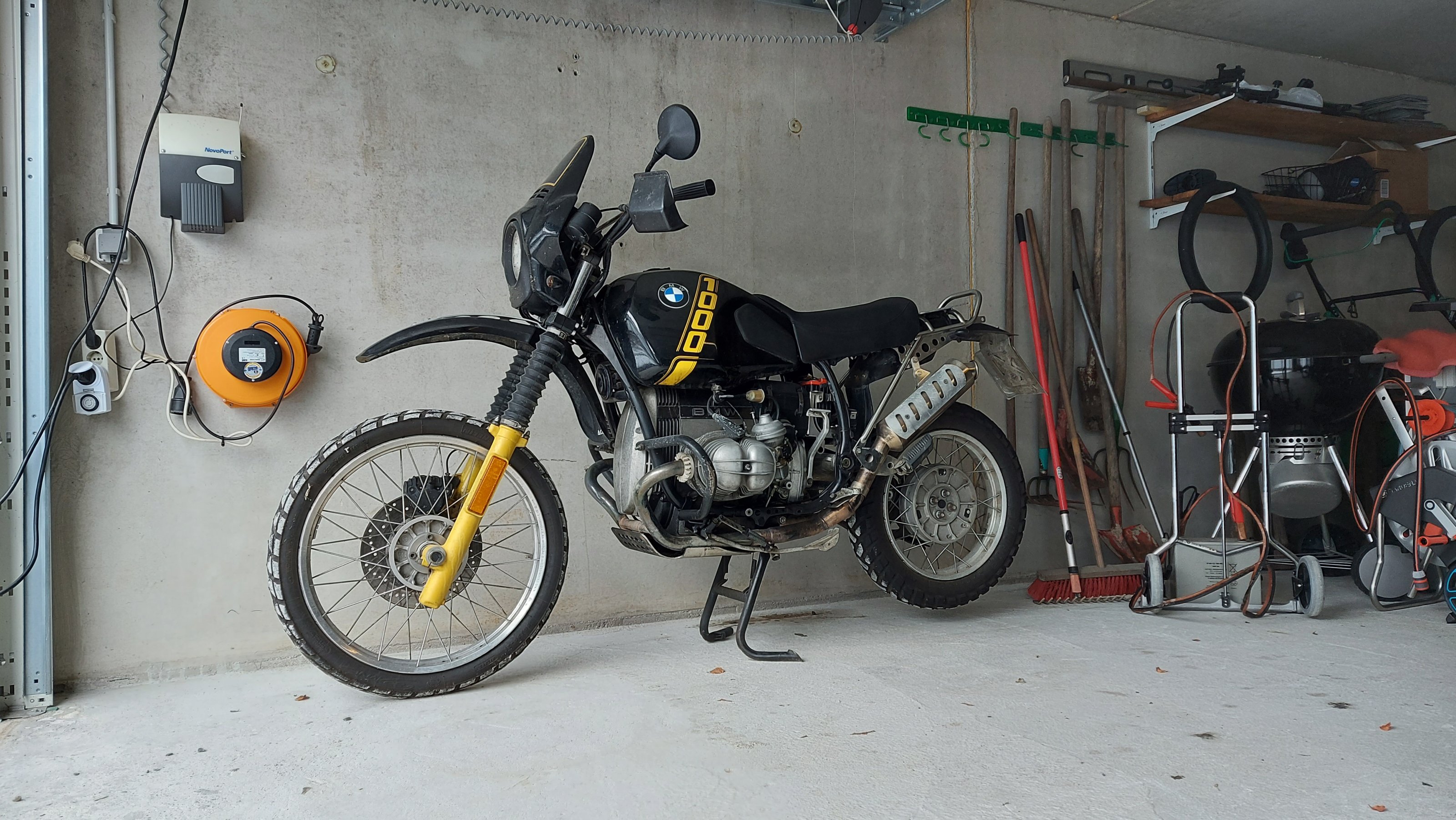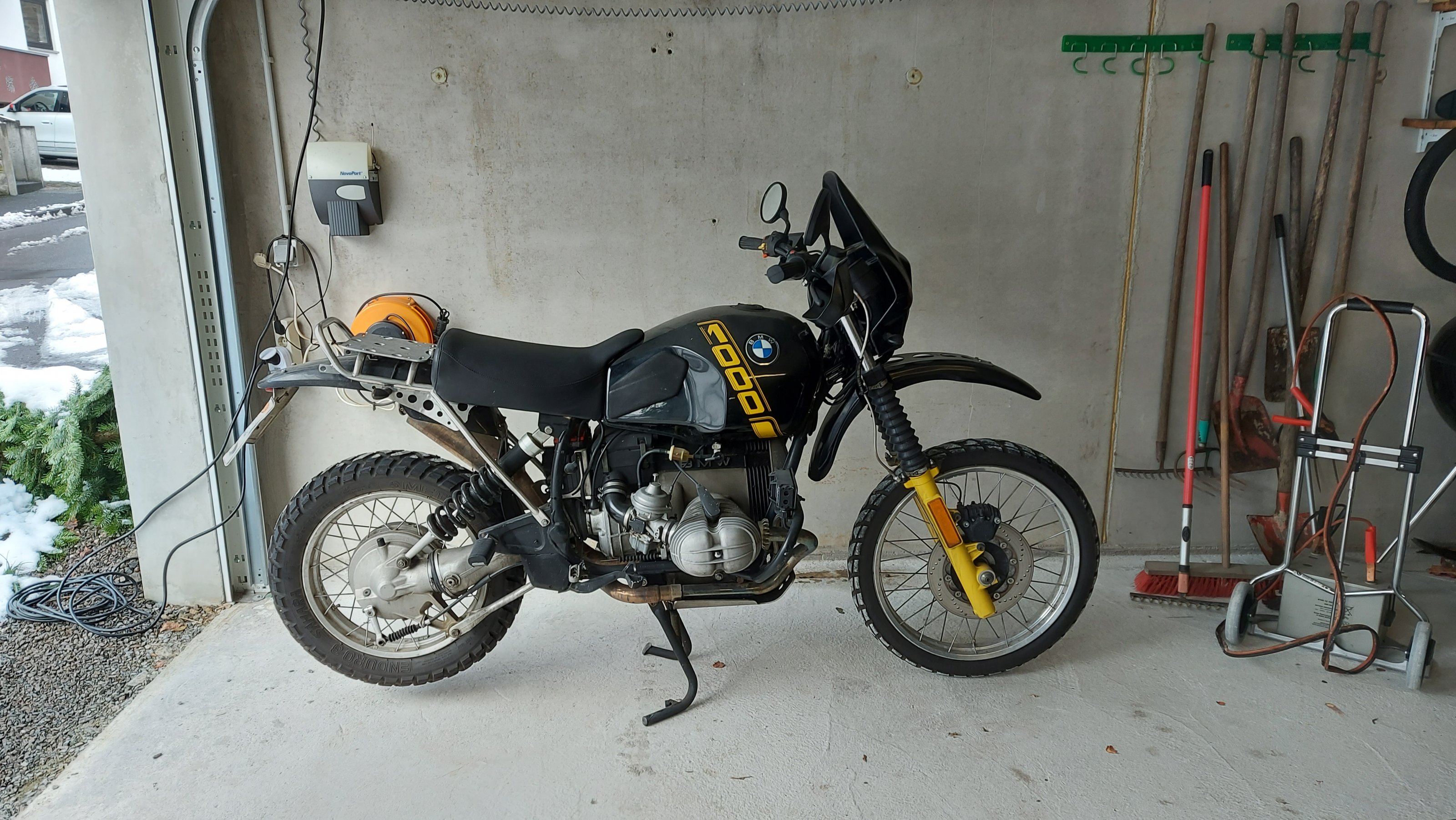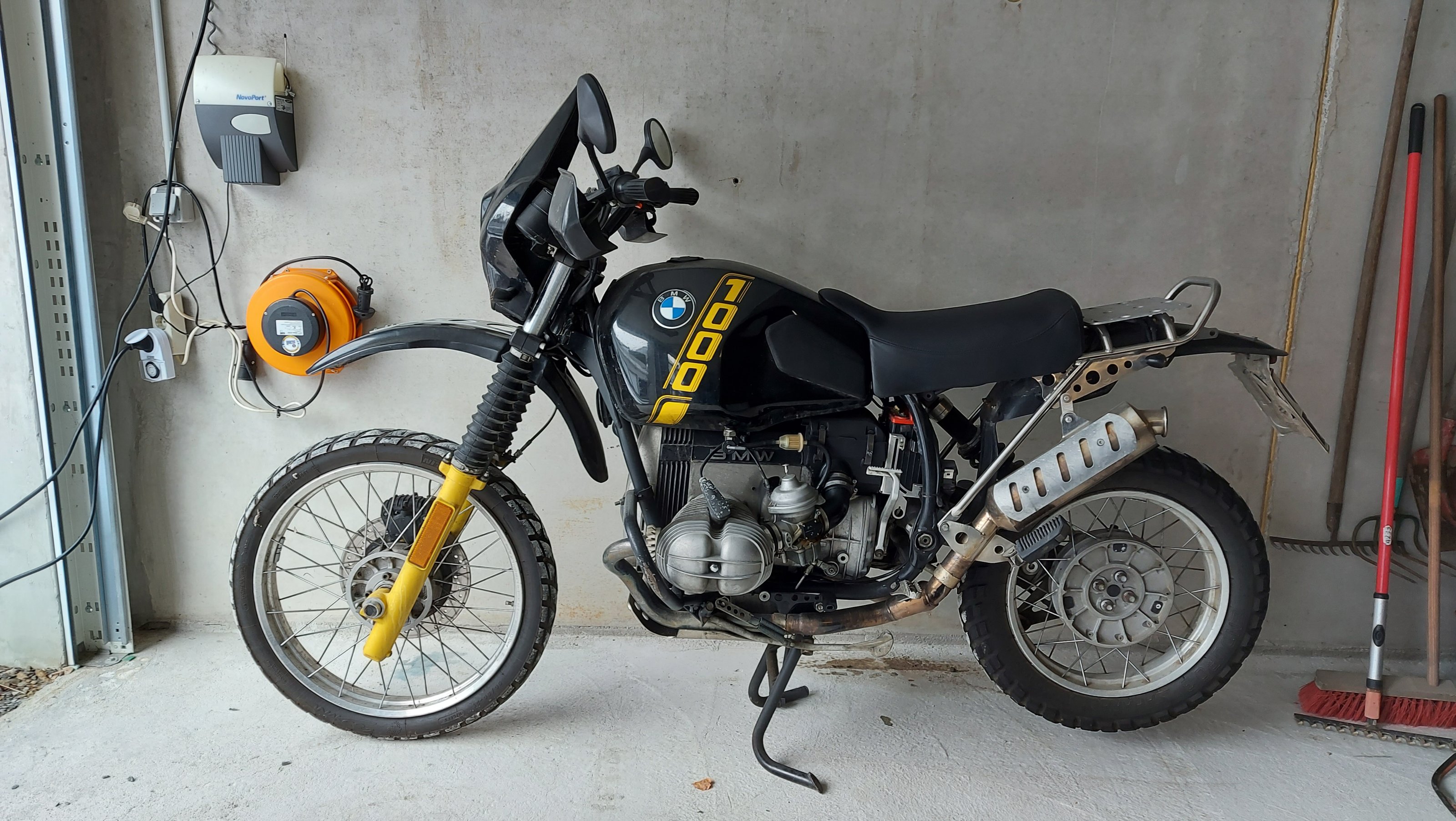 Biete eine 89er R100GS in schwarz gelb Gesamtlaufleistung ca. 75tkm AT Motor keine 10tkm Gletter Edelstahl Rahmenheck, Gepäckträgerplatte mit Schnellverschluß, Einzelsitz, Sitzbrötchen, Auspuff, Y-Stück mit ABE, Rück und Bremslicht, Edelstahl Batteriekasten, Gelbatterie, Wilberts Federbein und Gabelfeder, Stahlflex Bremsleitung, runde Ventildeckel, großer Motorschutz