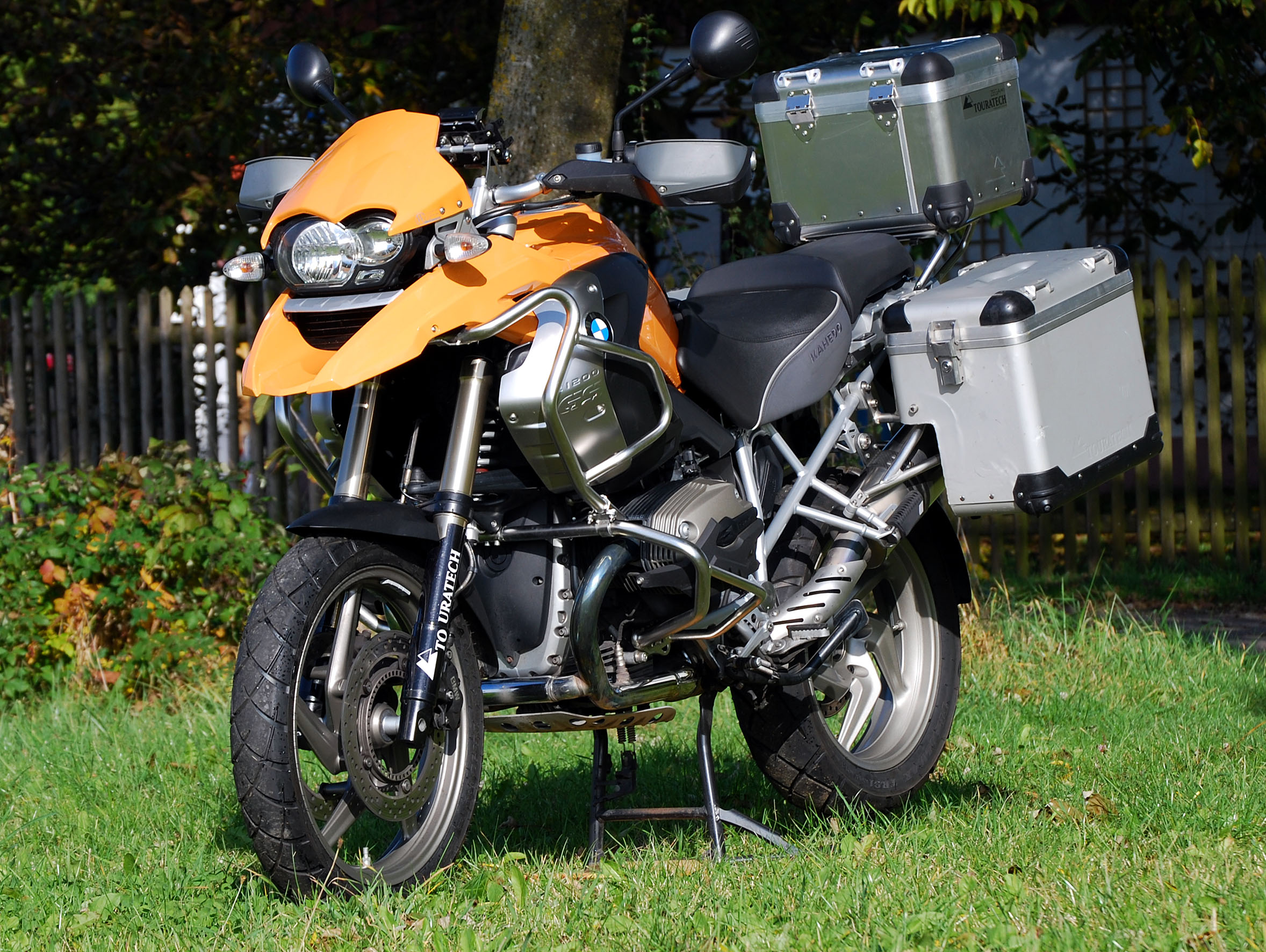 Aufgrund eines tödliche Motorradunfalls im engsten Freundeskreis haben wir beschlossen, sämtliche Motorräder der Familie zu verkaufen.Die angebotene BMW R 1200 GS ist ein absolutes Liebhaberstück mit Vollausstattung: ESA-Fahrwerk, Original-Tankrucksack, Touratech- Tankschutzbügel, Touratech-Motorschutzbügel, Touratech-Kofferträger und Koffer, Touratech-Topcaseträger und Topcase, Touratech-Navihalter abschließbar, Touratech-Ventildeckelschützer, Touratech-Kardansturzpad, Wunderlich Flowjet, Wunderlich Schwingendeckel, Akarapovic-Titanauspuff, Garmin Zumo 660 Motorradnavi (aktuellste Karten), Dunlop-Reifen absolut neuwertig Lithiumbatterie mit entsprechendem Ladegerät, Kahedo-Sitzbank hoch, Phillips X-Treme Motovision H7-Birnen.Erstbesitzer war BMW selbst (Presse-Testmaschine). Ich kaufte sie drei Monate alt mit 10.000 km, seither ist sie ausschließlich in meinem Besitz.Die BMW ist fertig für eine Weltreise ...Alle Originalteile wie Sitzbank, Scheibe und Auspuff sind im Kaufpreis inkl.