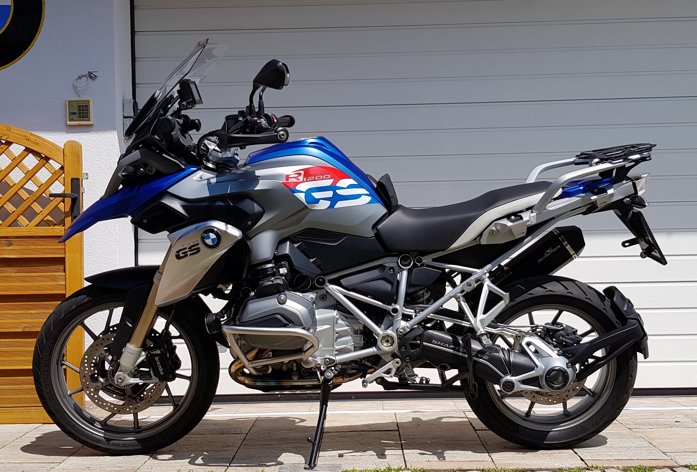 Biete hier eine Garagen gepflegte, garantiert Umfall- und Unfallfreie, als Erstbesitz, R1200GS LC zum Verkauf an. Habe die GS am 01.10.2015 angemeldet, jetzt 25000 km. Zur Grundausstattung der GS gehört das Tourenpaket, Komfortpaket und Schaltassistent, welcher von BMW nachgerüstet wurde. Sonderlackierung in Lupinblau metallic-matt, original Schnabel und Tankabdeckung in "frozen-darkblue metallic" und Serien Sitzbank normale Höhe vorhanden. FIN ist Z166217, mit dieser Nr. kann man über den VIN Decoder die Ausstattung einsehen. Service Nachweise vorhanden. Zusätzlich gibt es die Möglichkeit andere sinnvolle oder auch nicht sinnvolle ;-) Extras zu erwerben. Preis variert je nach Ausstattung und ist Verhandlungssache. Verhandlungsbasis mit den zusätzliche Extras wie Rallye Sitzbank, original Sturzbügel, Navigator 4 und AC Schnitzer Auspuff wäre 15200,-€. Die GS kann auch ohne die Anbauteile erworben werden, dementsprechend reduziert sich der Kaufpreis.