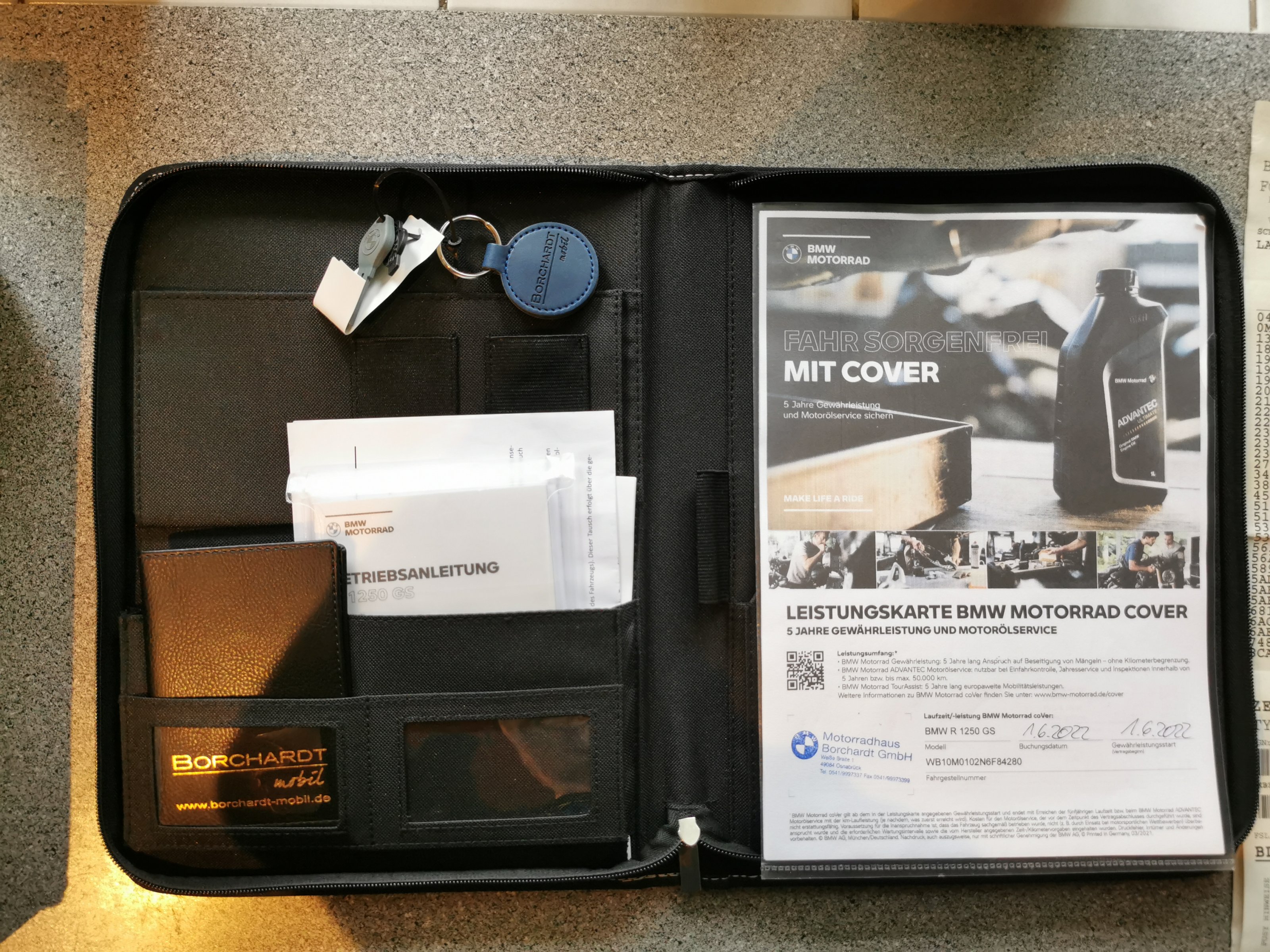 bin Erstbesitzer der BMW mit 4 Paketen. 3 Koffer, Navi mit Blendschutz, schwarze Scheibe PUIG, Sturzbügel, 2 Innentaschen für Seitenkoffer, Polster Top Case, 2 Wandhalter Edelstahl für Seitenkoffer, Öl-Service bis 50000km oder 6/2027 ist dabei, Handy Halter von SP-Connect inkl. USB Ladekabel, 2 Warnwesten, Erst Hilfe-Set, Werkzeugtasche etc. verbleiben im Top Case. Alle weiteren Originalteile sind vorhanden. Ein Satz Bremsbeläge vorne, Restreichweite 4000km, Reifen von Conti noch sehr gut.
