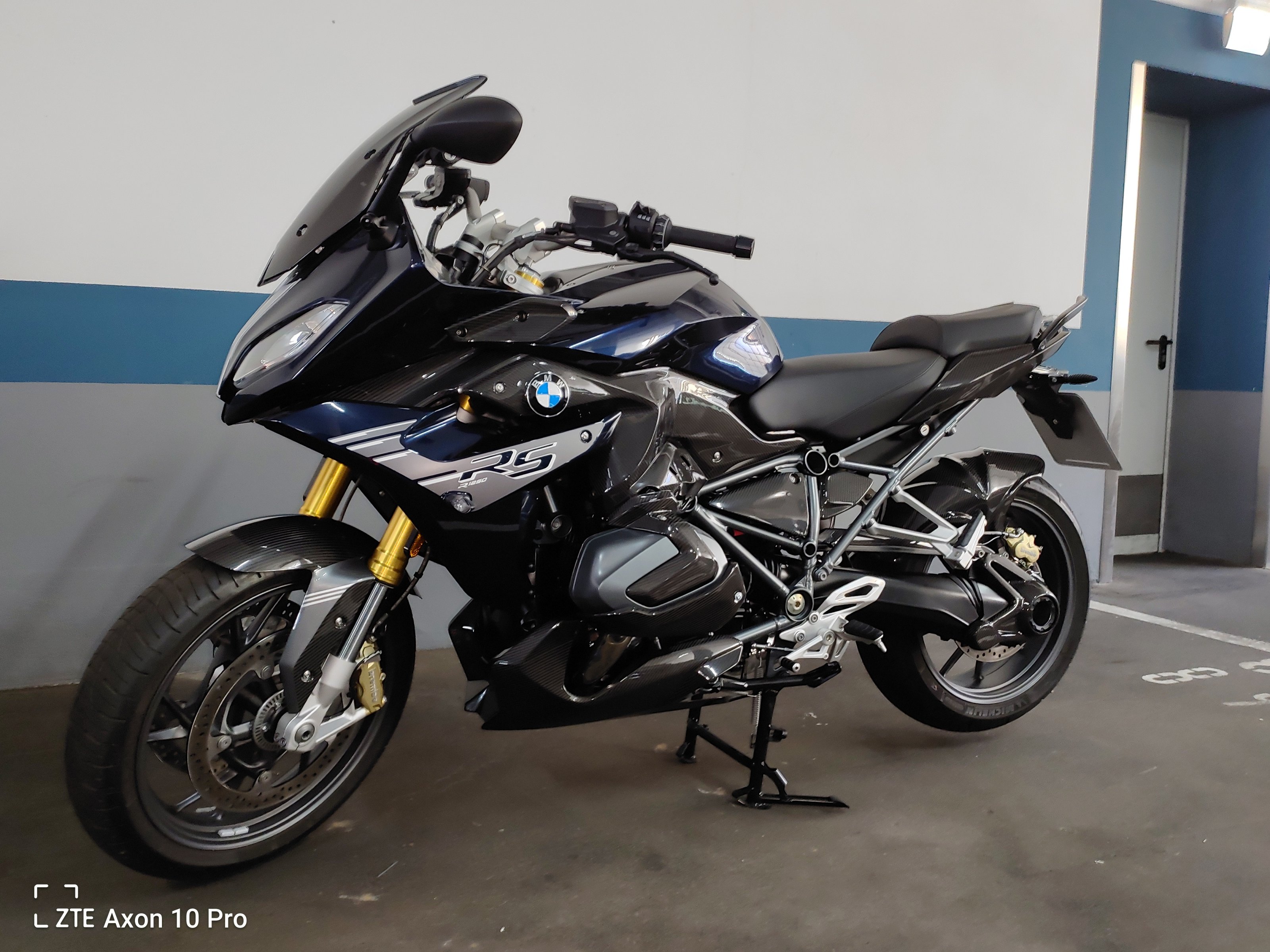 ich bin seit einigen Wochen wieder zu BMW gewechselt, nachdem ich Ducati und KTM gefahren bin. Wie schon bei einigen Maschinen vorher, stammt sie aus der Schmiede von Ilmberger. Er hat schon sehr gute Vorarbeit geleistet, neben dem Carbon ist auch der Heckrahmen in der Farbe des Hauptrahmens lackiert, die Soziushaltegriffe teilweise in dem schönen Blau und die Front in Silber. Dadurch wirkt das Motorrad stimmiger und mir bleibt diese Arbeit erspart. Natürlich habe ich auch schon Hand angelegt, neben den normalen Kleinigkeiten hat das Navi einen neuen Platz gefunden und der Lenker ist auf Superbike umgebaut. Viele Kilometer konnte ich noch nicht fahren, aber der Umbau hat sich mehr als gelohnt.