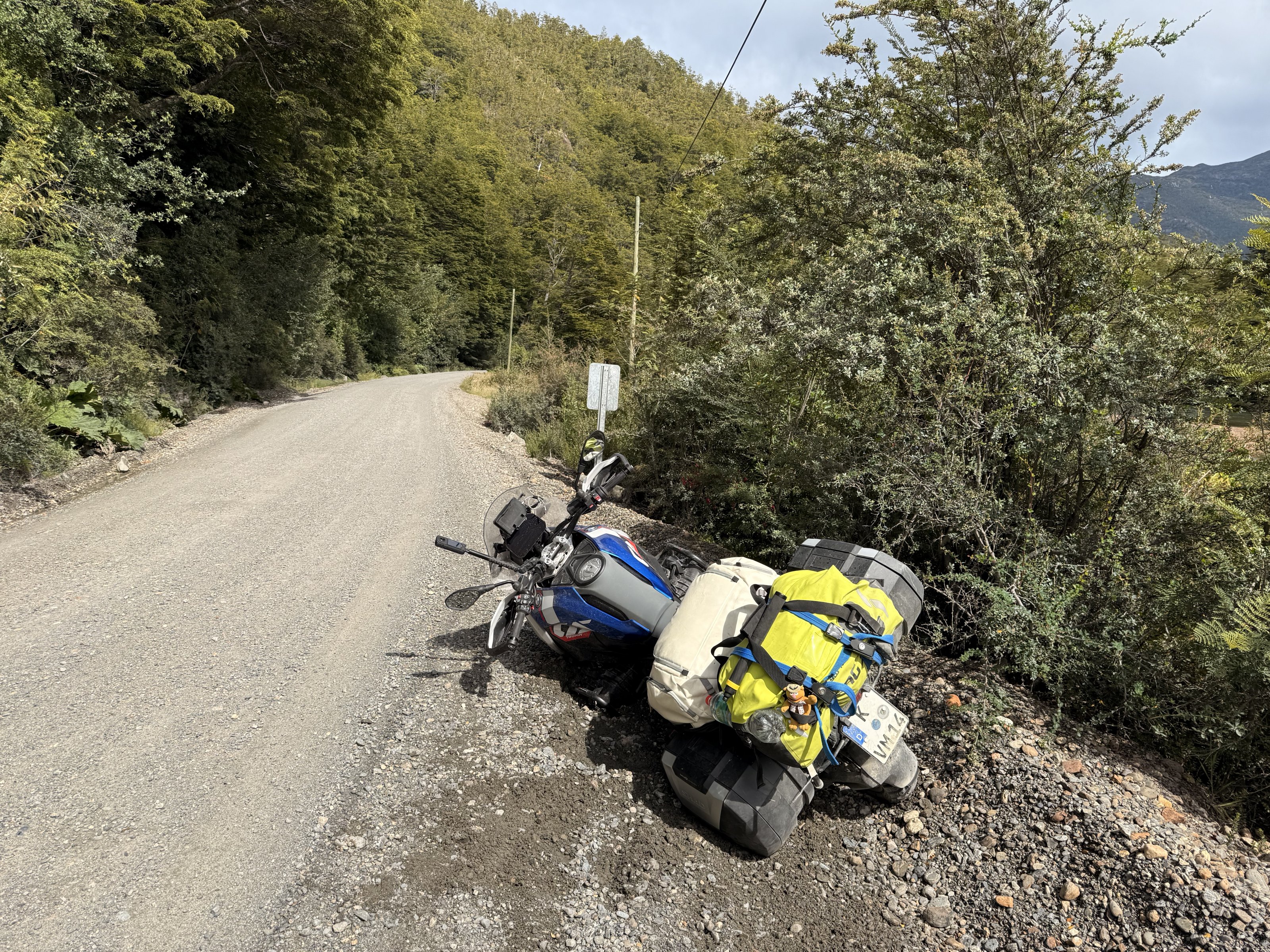 Also ich hab die da nicht alleine mit dem ganzen Gepäck aus dem Kies aufgehoben bekommen. Aber die Chilenen sind super hilfsbereit.