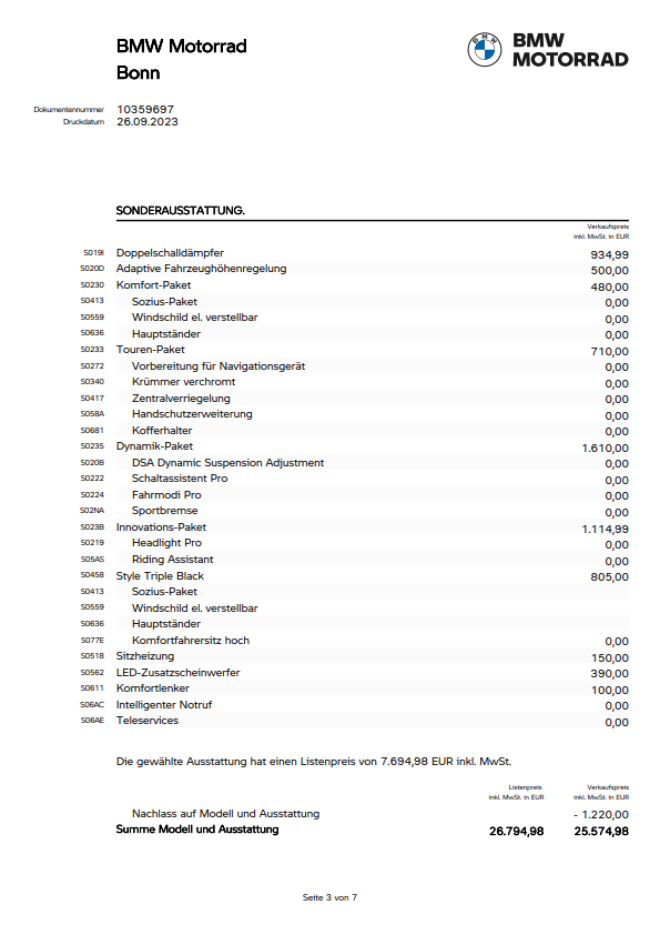 Sozius-Paket, Hauptständer jetzt als extra?