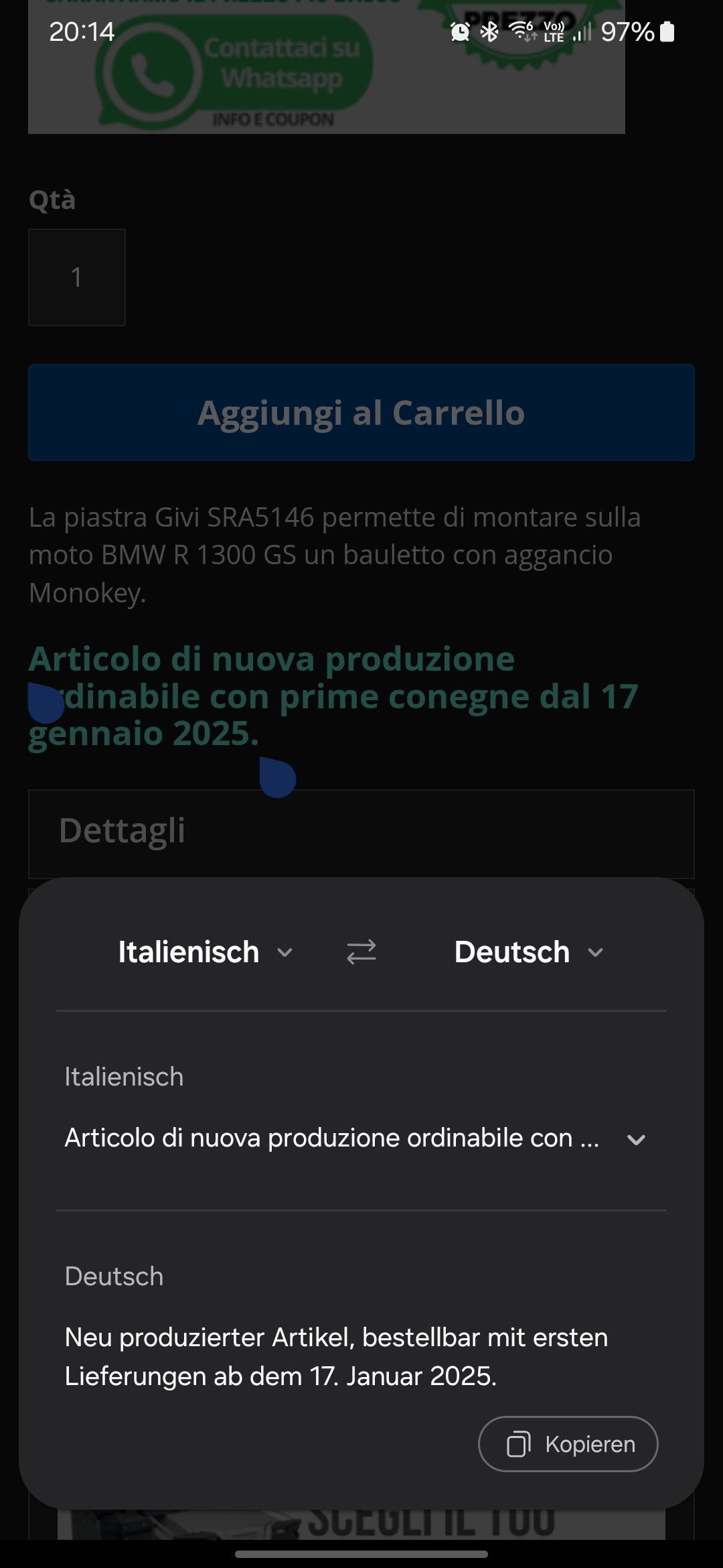 Und jetz habe was im Shop gefunden Givi shop 999,-