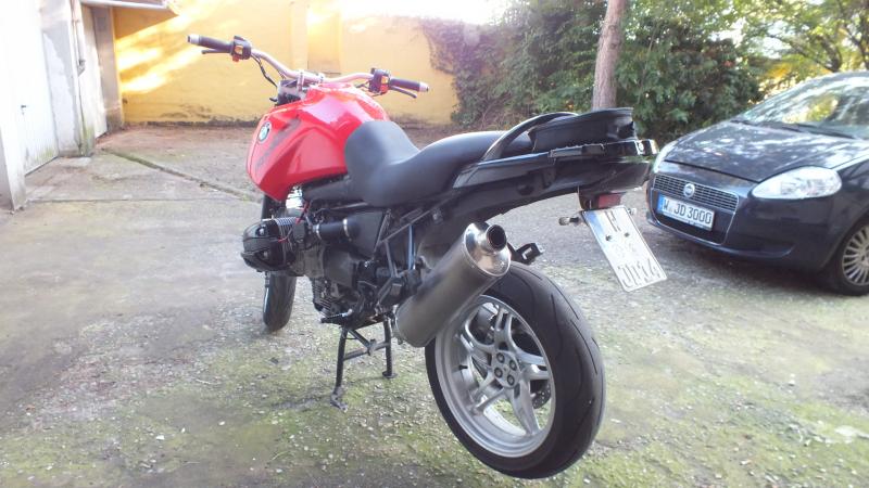 biete hier am Stück meine R1100GS an, nachdem mir Zeit, Lust und auch Geld für weitere Maßnahmen abhanden gekommen ist. Im Detail handelt es sich um eine R1100GS von 94 ohne ABS mit jetzt 112tkm. Zum Motor: hat bei 108tkm eine komplette neue Kupplung bekommen, bei 110tkm sind Edelweiss Nockenwellen (EM1V4) reingekommen, Steuergerät hat einen Chip, kurze Ansaugrohre mit Alu-Trichter (Düse), Drosselklappen mit 5. Element ausgerüstet, K+N Filter, Röser Leisungskrümmer, Laser Endtopf mit 2 Eatern E-geprüft, Verbindungsrohr mit Kat und Lambdasondenanschluss, Getriebe im schwarzen Gehäuse ebenfalls bei 108tkm überholt. Optik+Fahrwerk: 17" von R1150RT, WP Federbein vorne von 12er GS, Telelever, TT-Getriebverstärkung und ADV Heckträger schwarz beschichtet, Kugelkopf neu und noch keine 500km gelaufen, ADV Sitzbank, Kunststofftank ohne Blasenbildung, WPR Fatbar Lenker mit Erhöhung, Koso RX 1 GP, bereits verkabelt, Yamaha MT-03 Lampenmaske, Blinker vorne und hinten LED, schwarzes LED Rücklicht an Alu-Kennzeichträger.