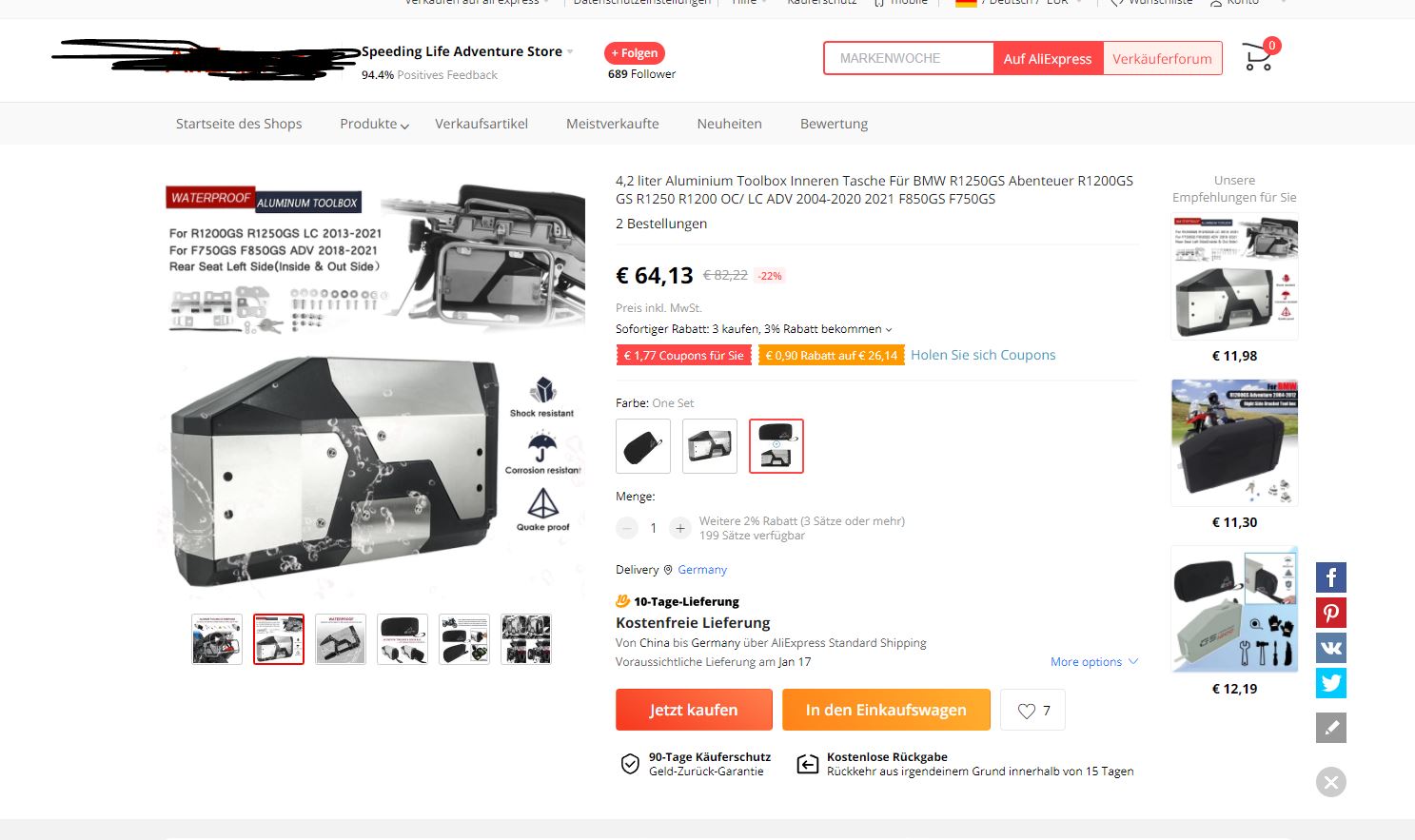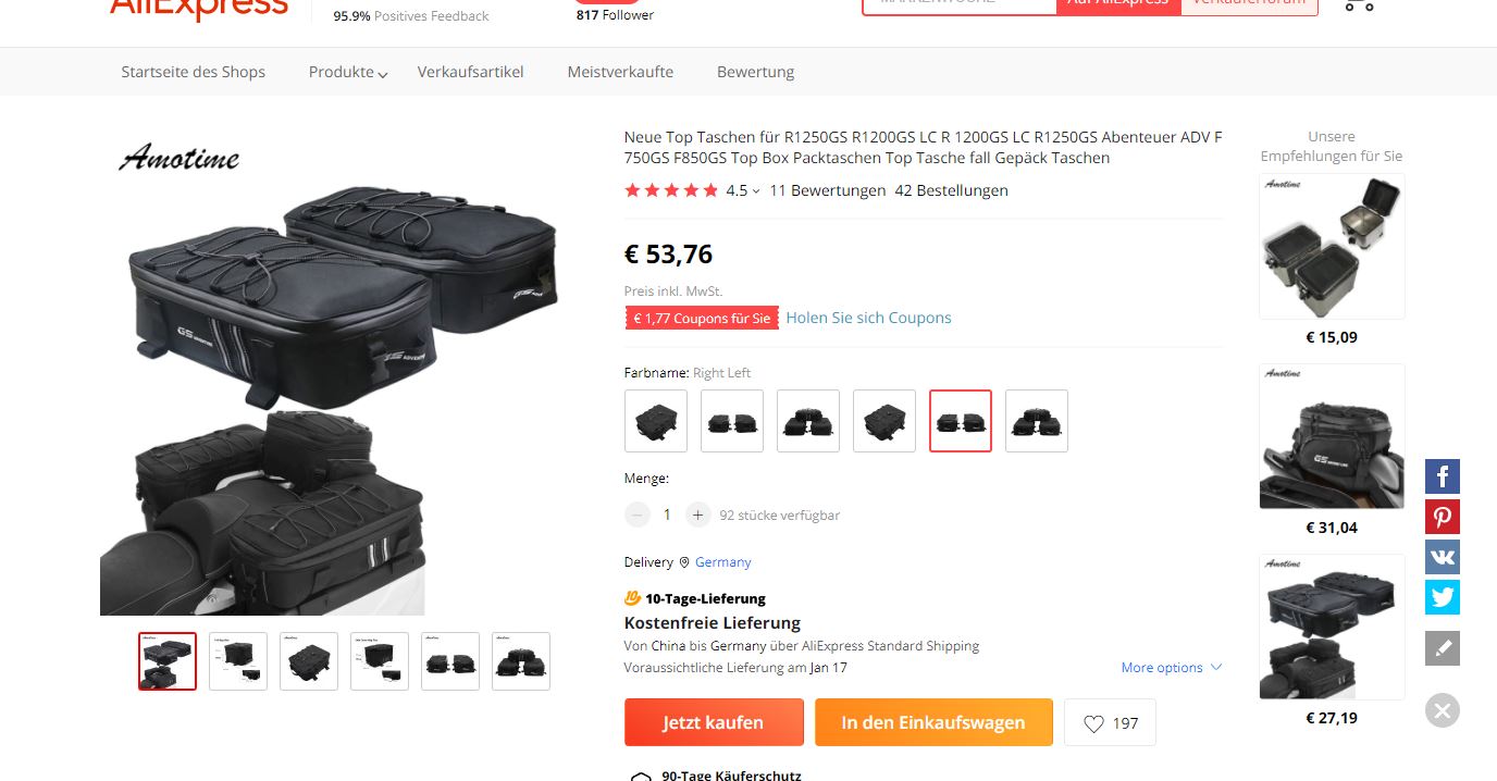Hat einer Erfahrung mit dier Box aus China für die ADV und die Alu Koffer Aufsatztaschen ?