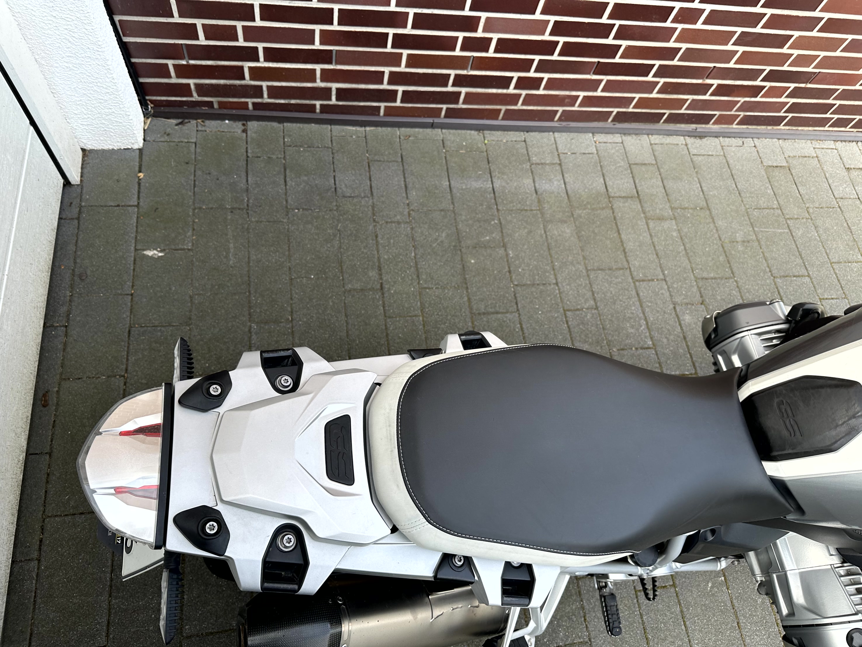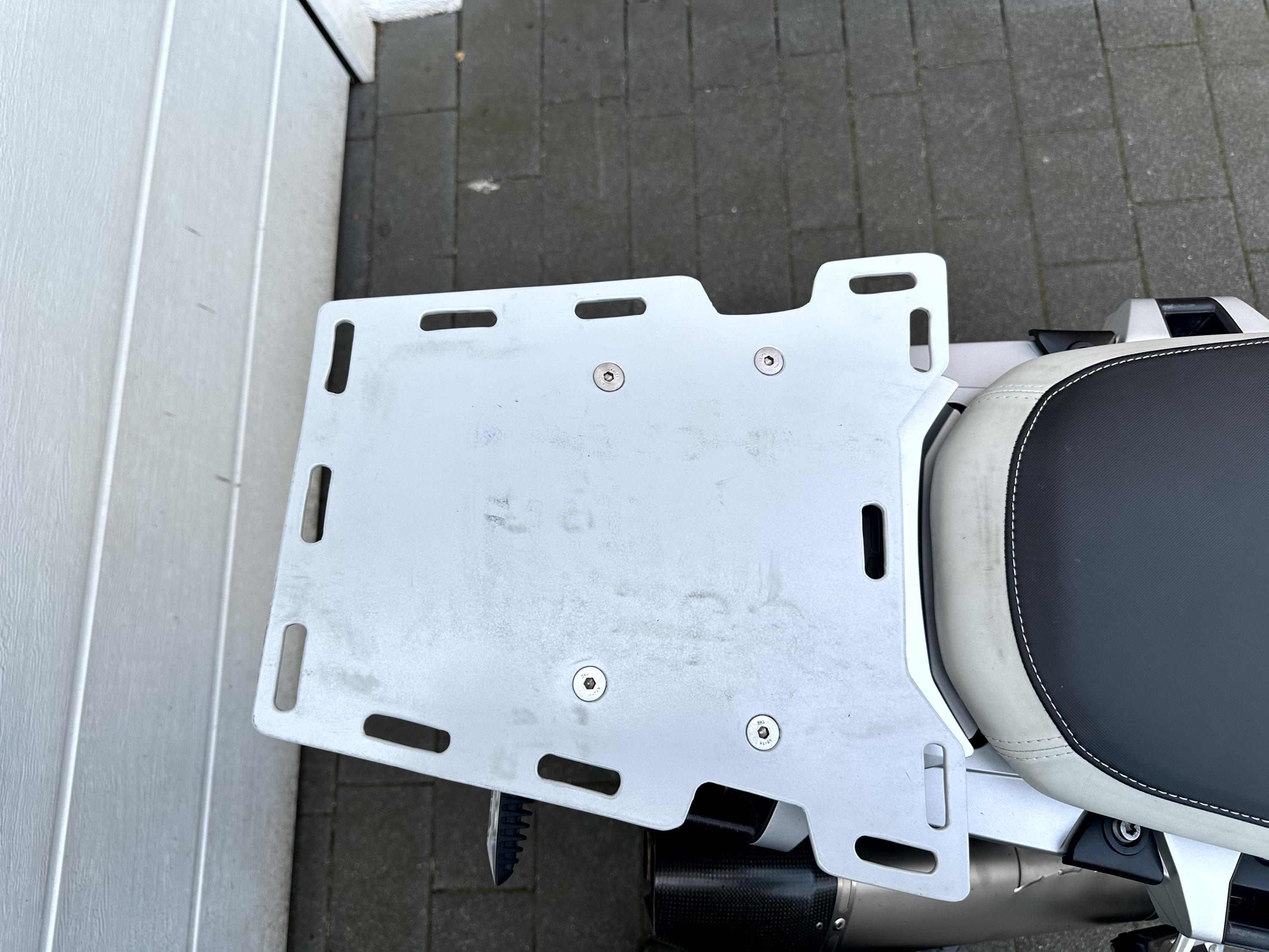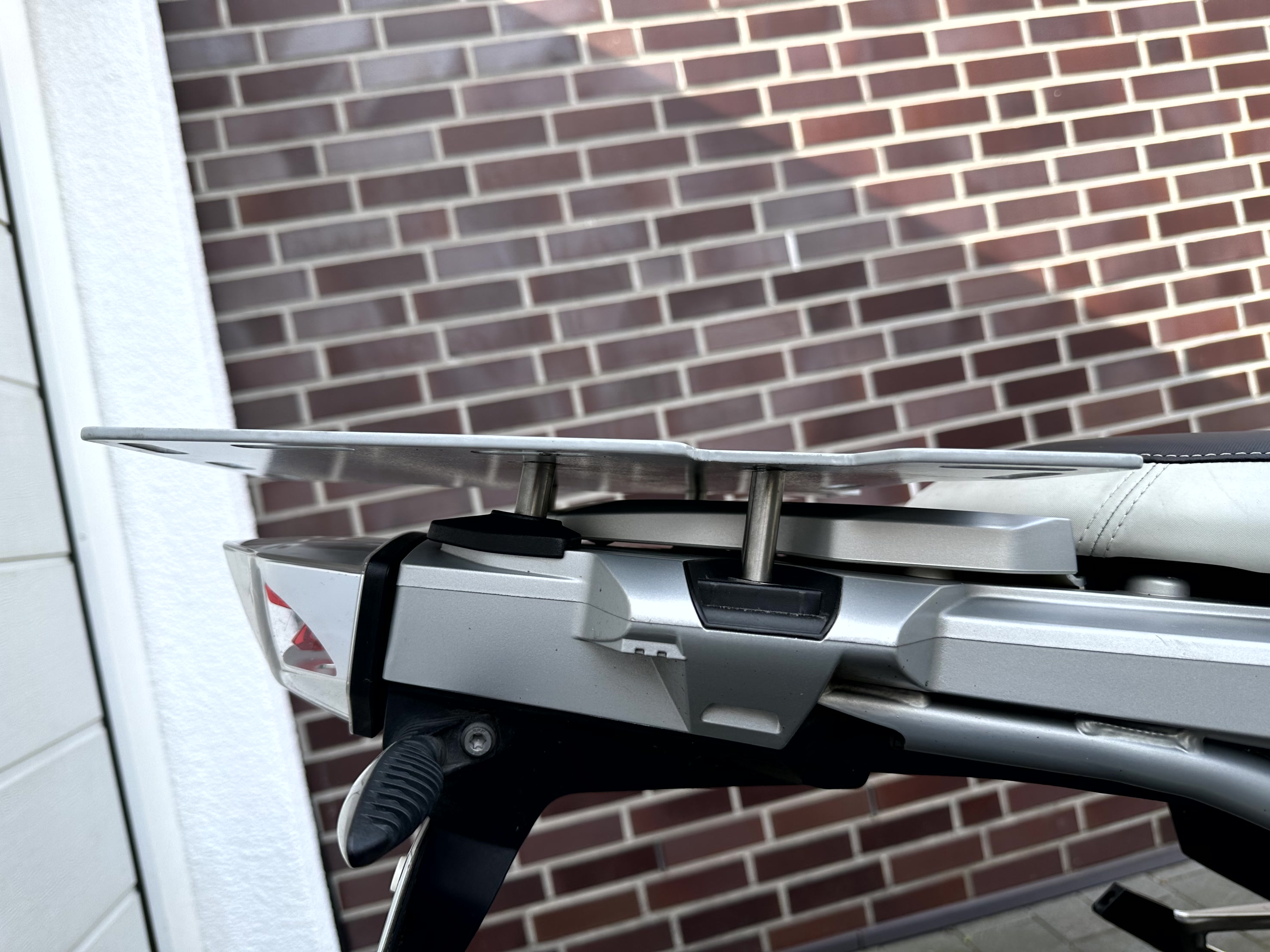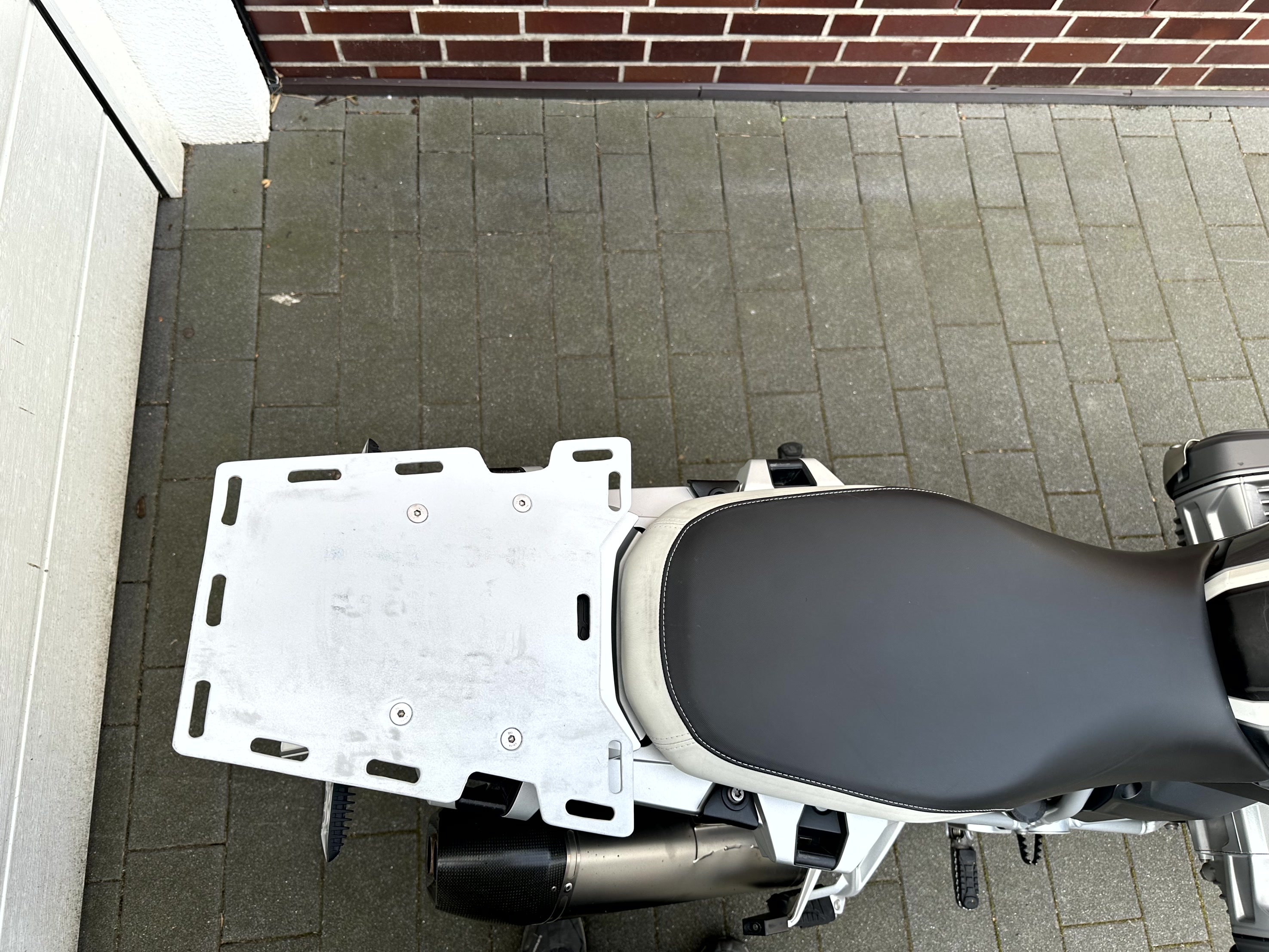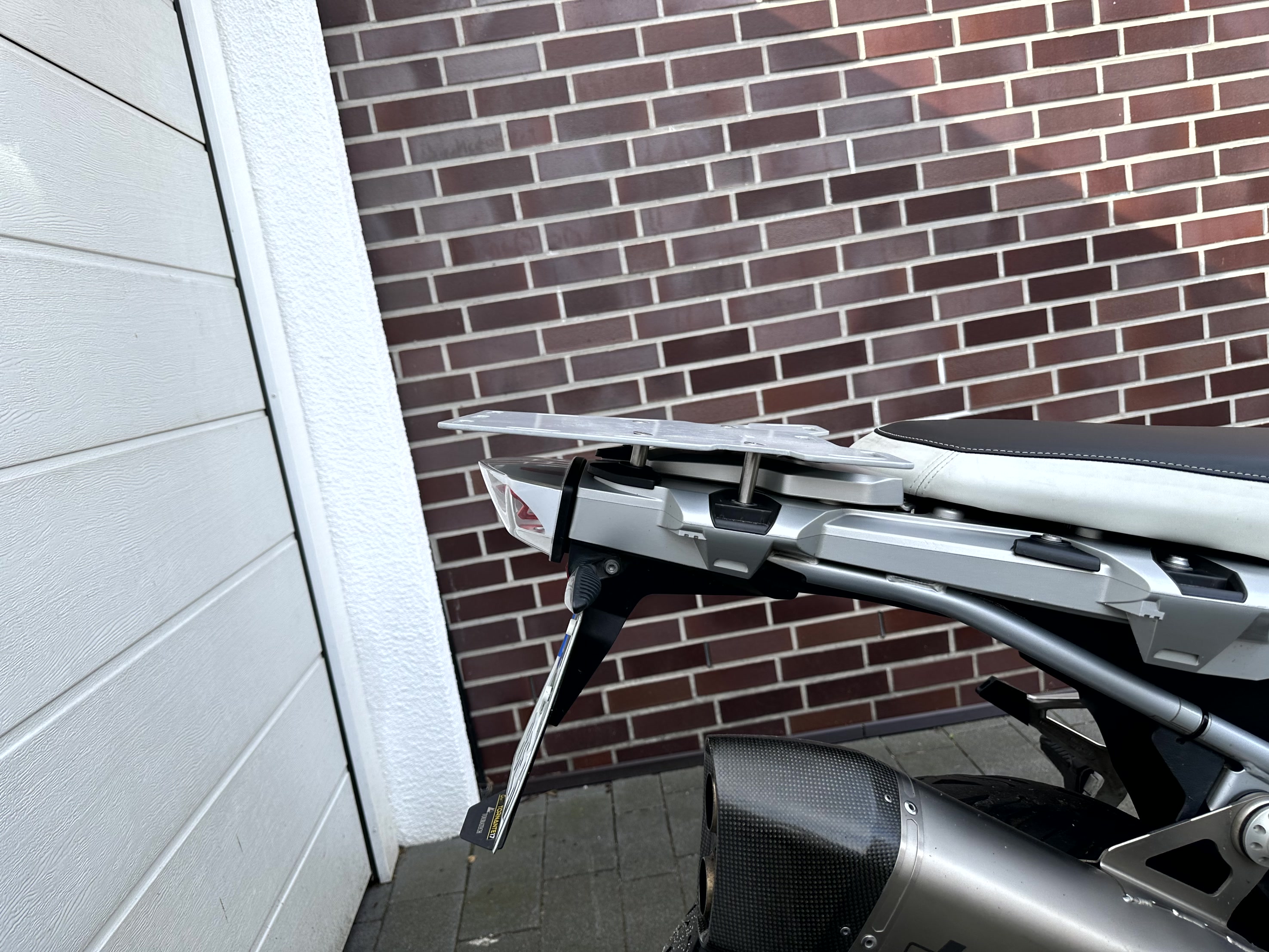 Für die Alltagstauglichkeit habe ich mir eine Gepäckplatte (4mm Aluminium und Pulverbeschichtung) erstellt. Damit ein vernünftiges Transportieren von Hecktaschen kein Problem.