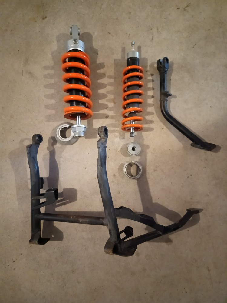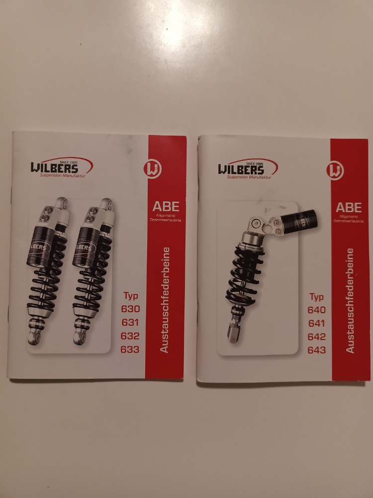 Hiermit möchte ich das WESA Wilbers Fahrwerk vorne und hinten, Modelle 630 und 640, mit 50 mm Tieferlegung verkaufen. Es betrifft auch die Haupt- und Seitenständer. Die ESA und Motormodule werden vom OEM-Fahrwerk auf die Wilbers umgebaut. Das Fahrwerk hat geschätzt 55.000 km hinter sich. Es wurde im April 2013 vom Vorbesitzer montiert, und weil es für mich zu niedrig ist, habe ich das originale Fahrwerk wieder umbauen lassen. Was auf den Fotos zu sehen ist, wird verkauft. Die ABE’s sind dabei.