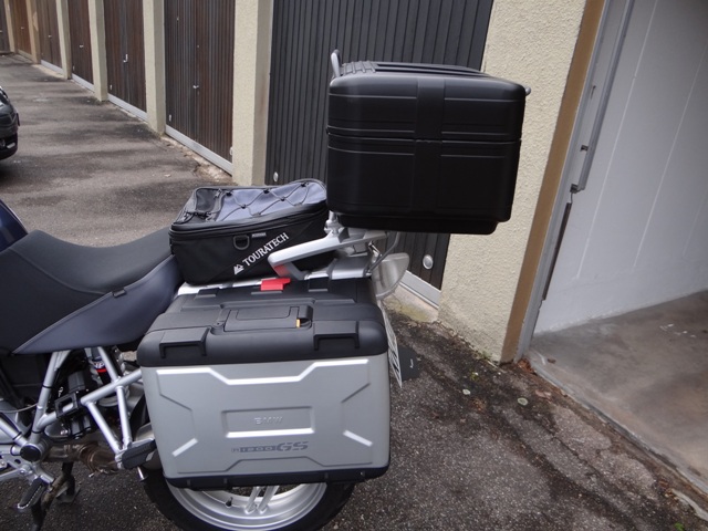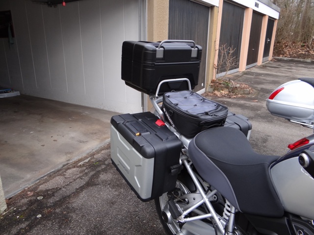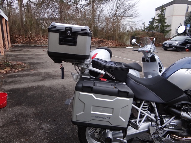 ich habe zwar eine R1100GS, aber ich habe mir das Alutopcase der R1200GS Adventure angebaut. Ich finde das es zum Kälbchen passt, aber das ist wie immer alles Geschmacksache. Als Koffer habe ich die originalen Systemkoffer, von BMW, aber die werden eigentlich nur montiert wenn es mal länger auf Reise geht. Das sieht dann allerdings dann wirklich sehr bescheiden aus. Aber wenn ich die Koffer vielleicht 1-2mal im Jahr brauche dann müssen es nicht unbedingt die passenden Alukoffer der R1200GS Adventure sein, ist meine Meinung. Habe eine SR-Racing Komplettanlage und habe noch nicht probiert ob der linke Koffer überhaupt noch ran passt.