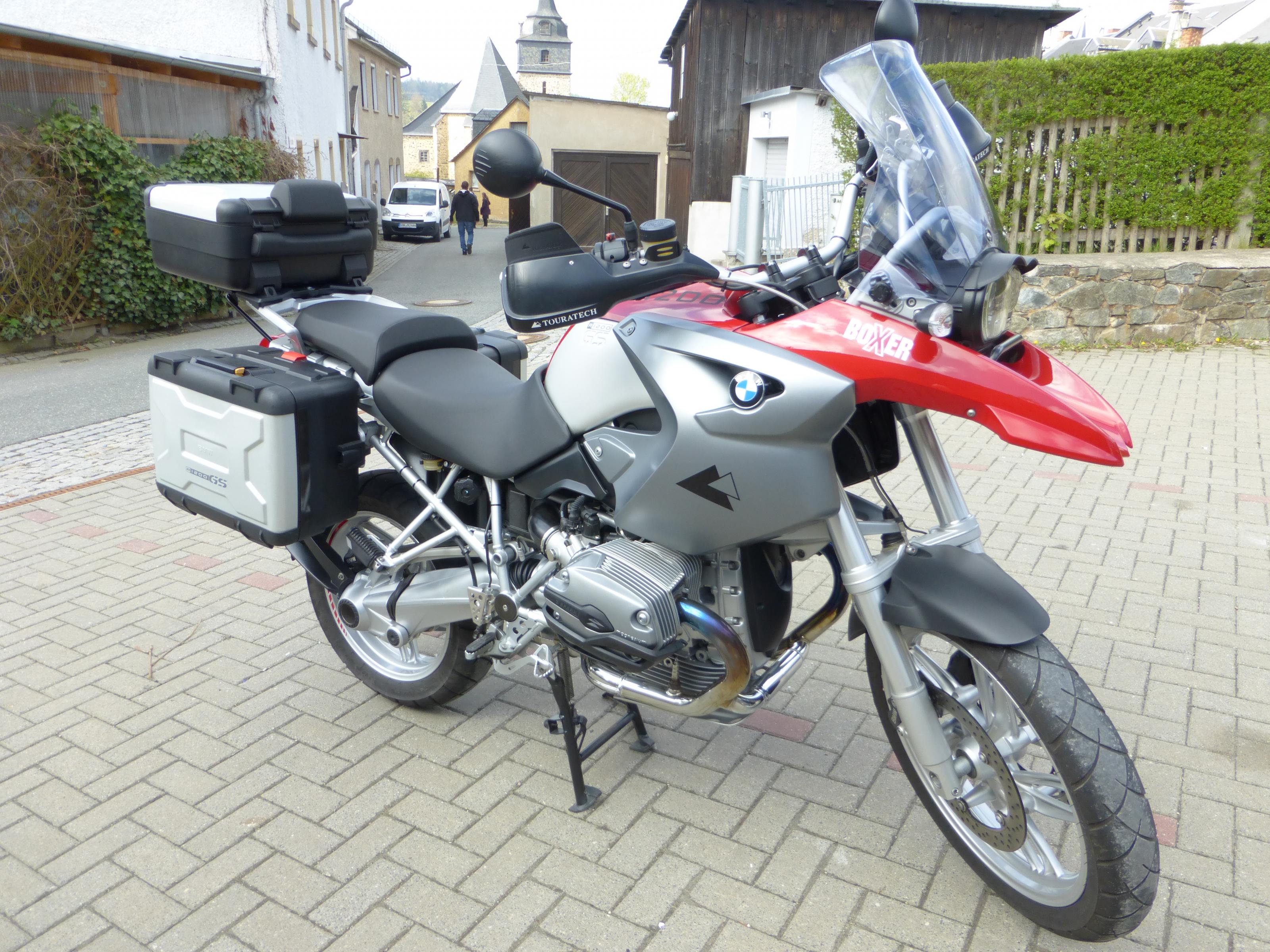 BMW Koffer und Topcase an Bord, den TR von Wunderlich gibt es dazu.