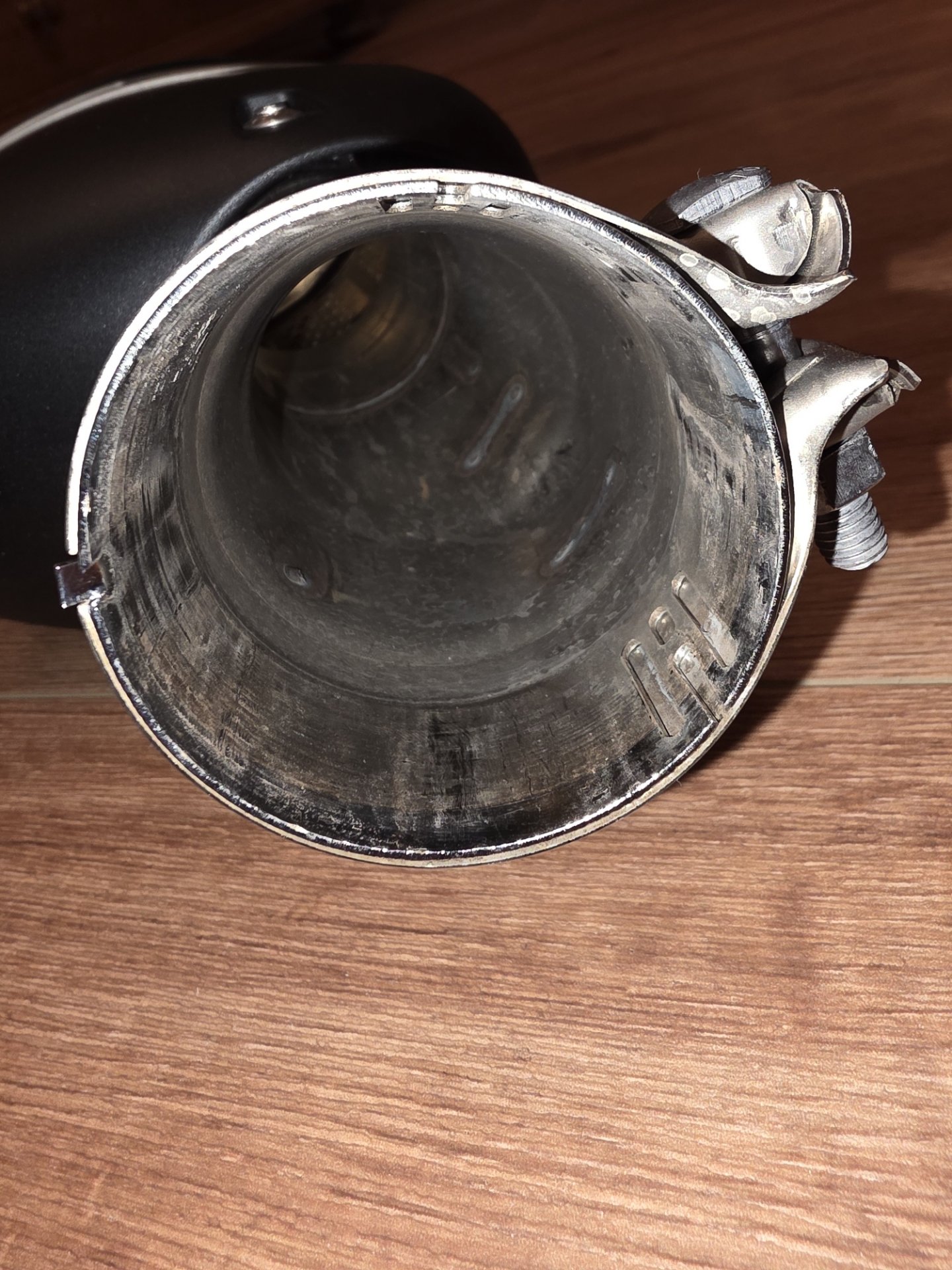 Was mir allerdings beim Fotografieren aufgefallen ist, am Hitzeblech zum Krümmer hin hat er eine mini kleine Beule. Keine Ahnung ob die schon von Anfang an dort war oder im Karton eingedrückt wurde.