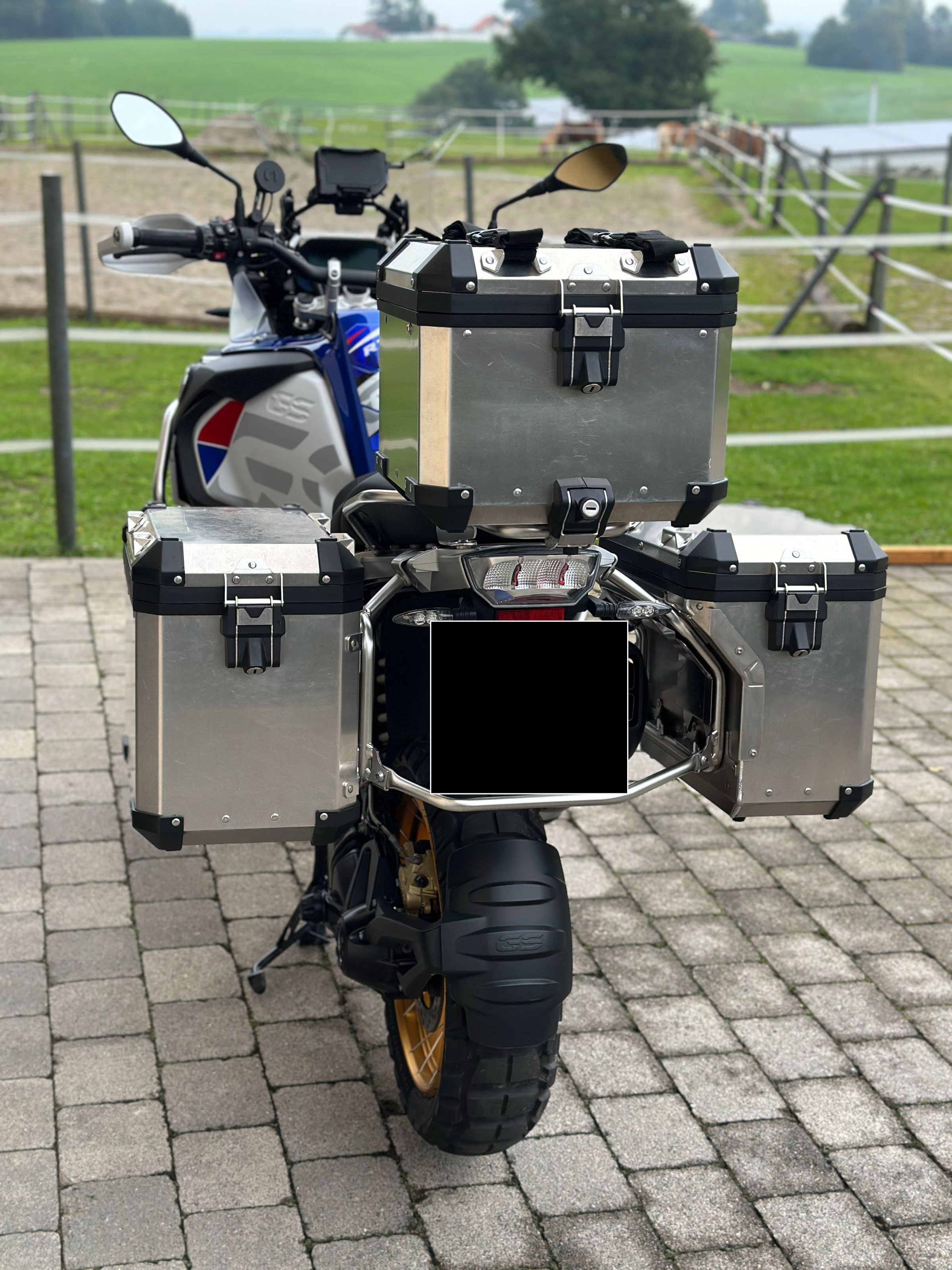 Die abgebildeten Koffer und Topcase (Wasserdicht, nichts verzogen) mit Innentaschen können für 500.-€ mit erworben werden.