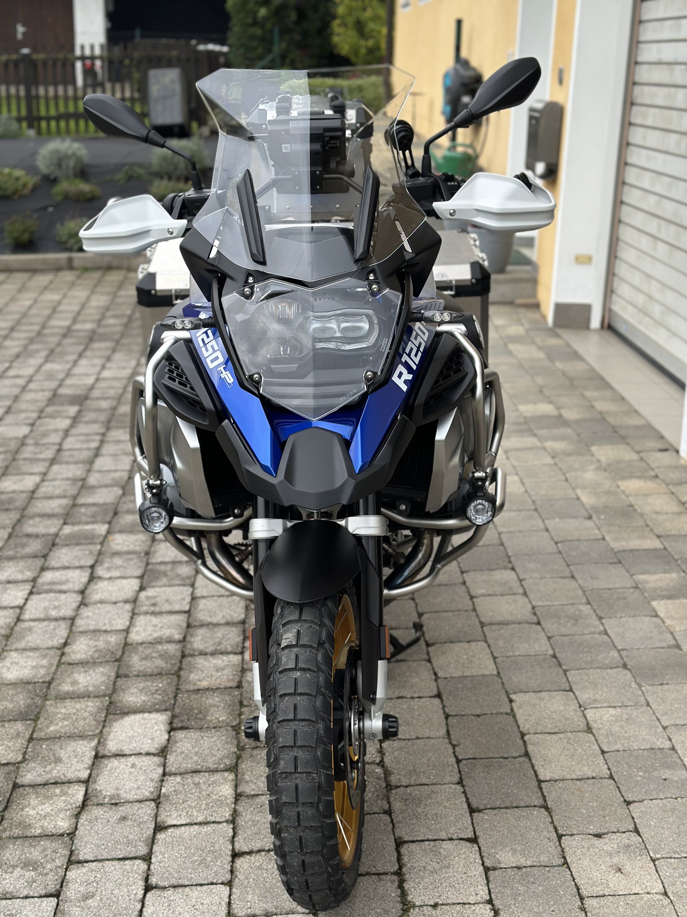 Zusätzlich ist der BMW Connected Ride Cradle, der Scheinwerfer-Schutz, original BMW Lenker-Erhöhung und eine Puig Scheibenverstärkung verbaut.