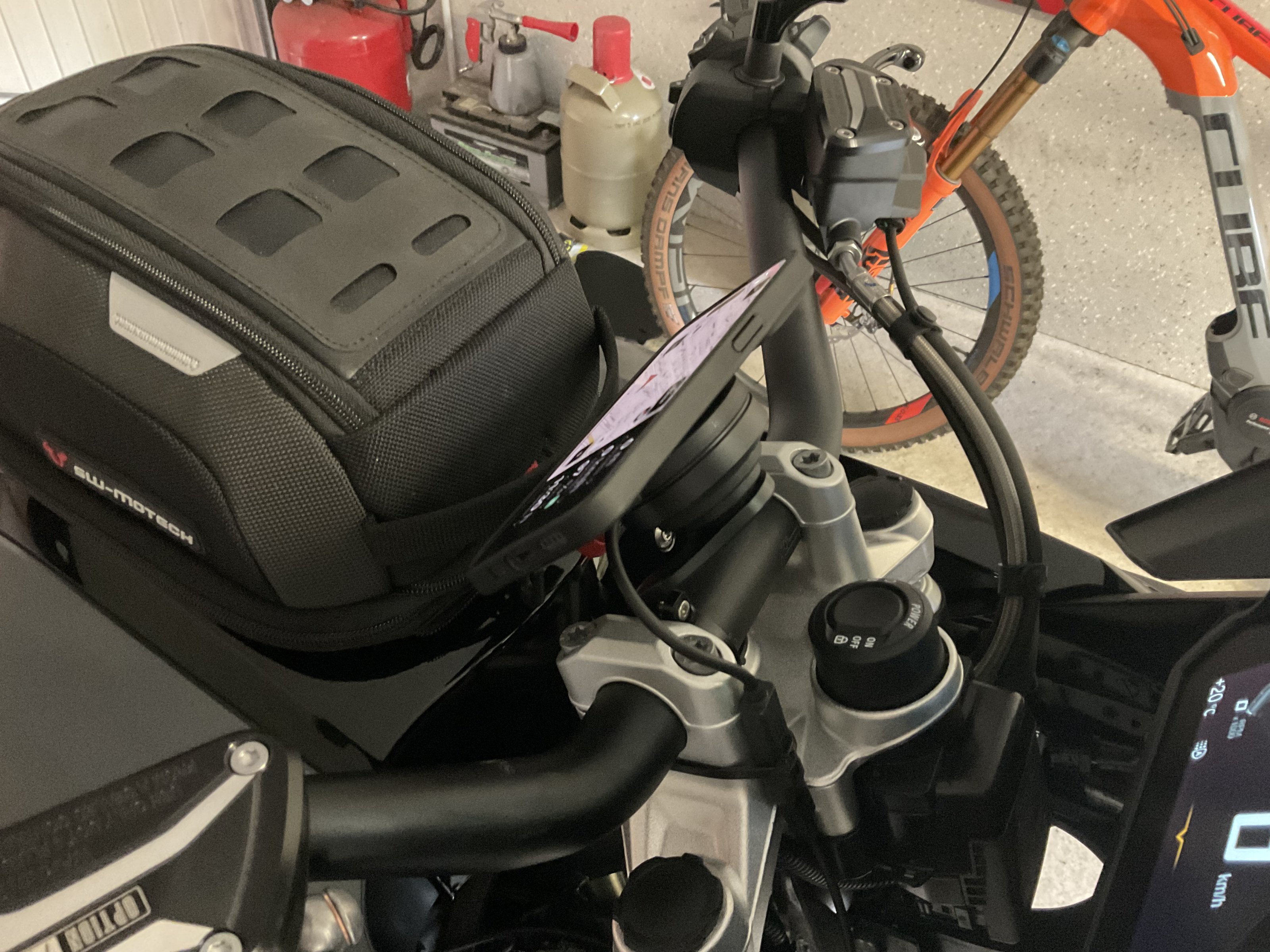 Hallo Ingo, wo hast du das Kabel für den SP Connect Ladeadapter angeschlossen?So, gerade noch den SW Tankring montiert für mein Daypack und die SP-Connect Ladeeinheit für mein Handy das ich zur Navigation nutze. Der Halter ist mit dem verbesserten Viberationsdämpfer versehen.